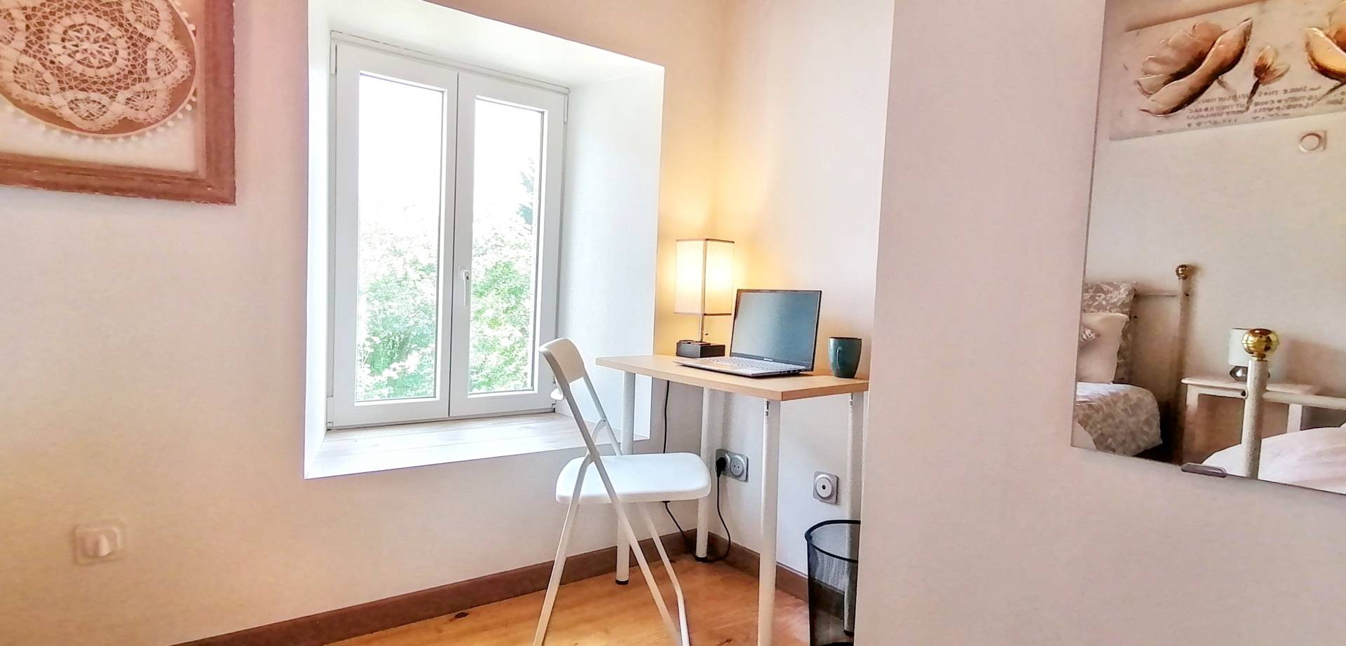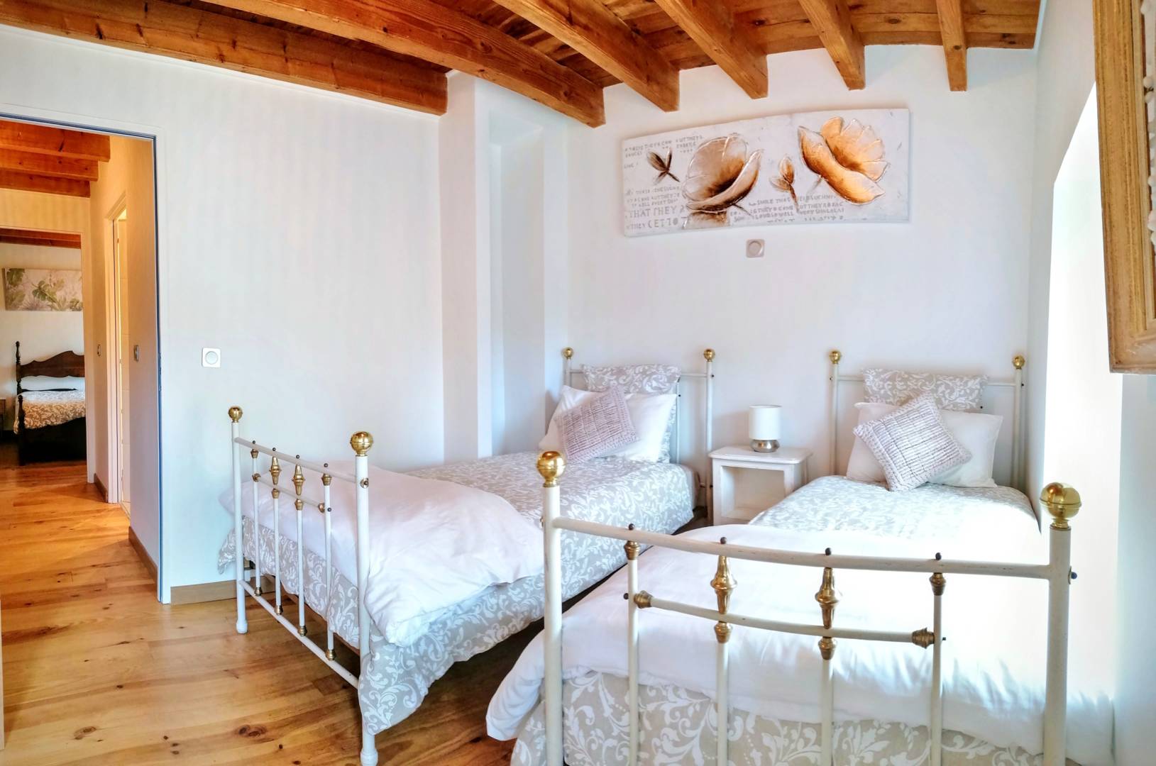 Une chambre avec deux lits simples de 90 cm, baignée de lumière grâce à ses deux fenêtres orientées au sud.