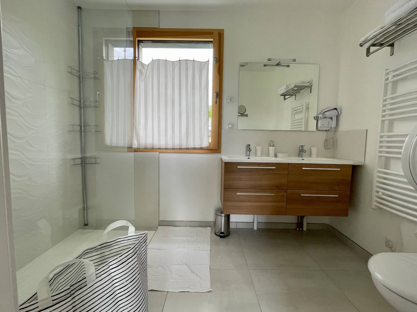 Gite neuf à basse consommation, 60 m2 en rez-de-chaussée, cuisine bien équipée, TV grand écran, prises RJ 45, station de charge électrique (payante mais sur place), photovoltaïque, magnifique vue et environnement très calme, grande terrasse, pergola, nombreuses balades à partir de la maison.