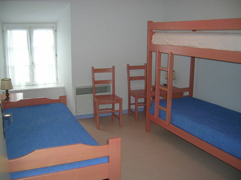 Maison de village mitoyenne en pierre dans un bourg médiéval comprenant 3 gîtes. 1er et 2ème étage; Pour celui-ci ,salle de séjour, coin-cuisine; 3 chambres : 1 ch avec lit 140, 1 ch avec 2 lits 90 superposés, 1 ch avec 2 lits superposés; salle de bain; 2 wc. Draps fournis. TV écran plat et lecteur DVD. Cour commune fermée. Jardin à proximité immédiate non attenant fermé, commun avec barbecue. Salle de jeux commune aux 3 gîtes. Chauffage électrique selon consommation. Superficie : 92 m2.