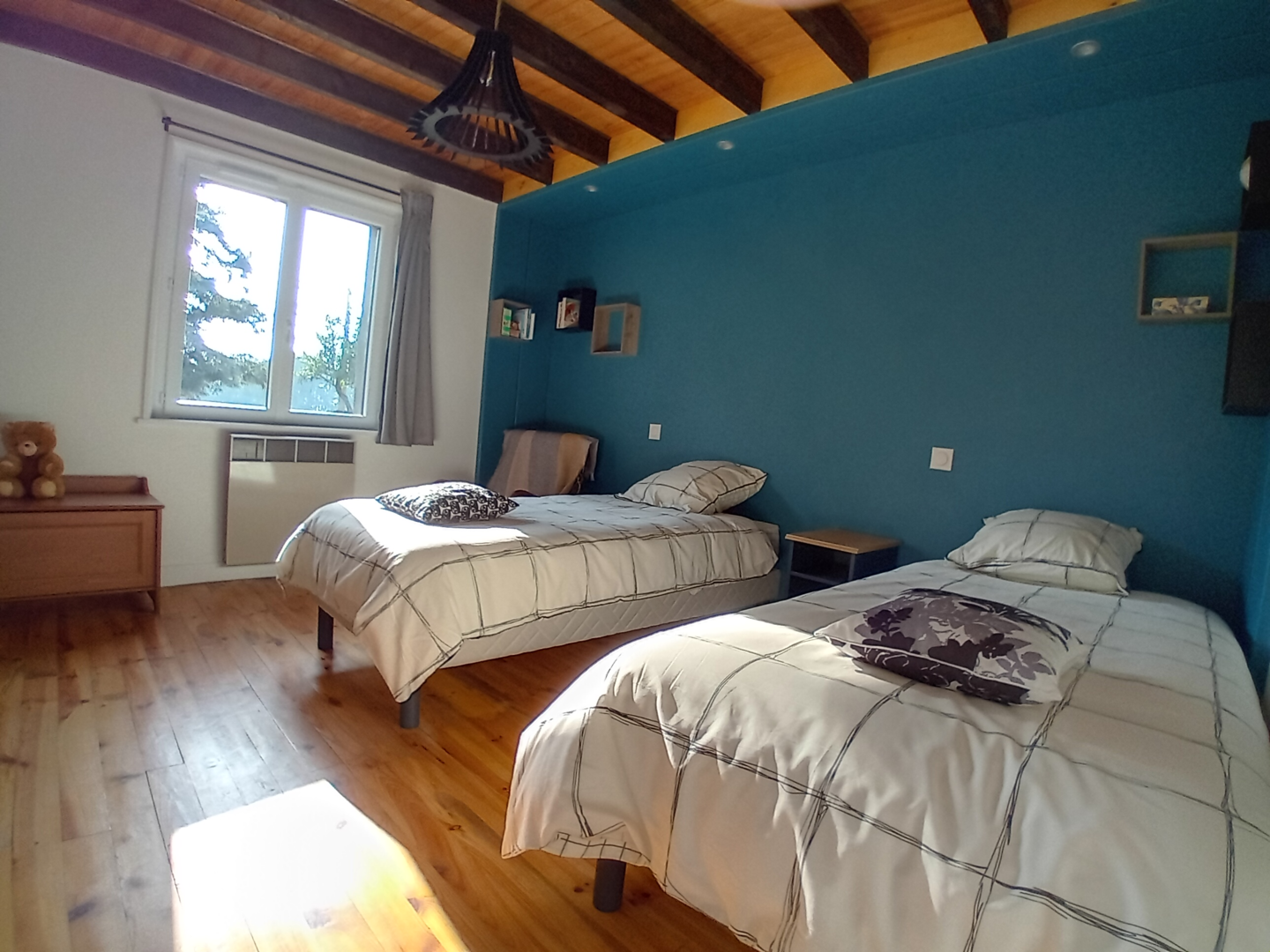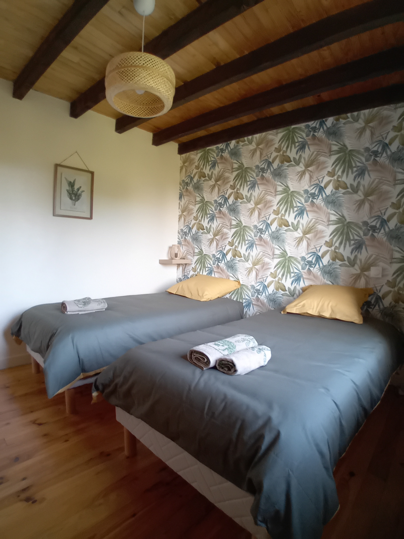 A l’étage : Une chambre avec deux lits de 90, une chambre avec un lit 140, une chambre avec deux lits de 90, une grande salle d’eau avec une douche, un WC indépendant.