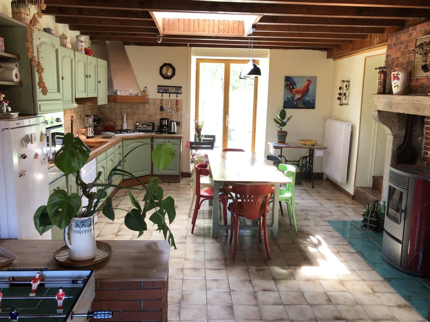 Situé dans le Parc Naturel Régional du Livradois Forez, à 30 km de Clermont -Ferrand et non loin des Volcans de la chaine des Puys inscrite au patrimoine mondial de l’UNESCO, le village de Fayet le Château est un lieu de charme et de tranquillité où il fait bon se retrouver en famille. Le gîte a l’esprit d’une maison de famille chaleureuse avec un confort optimal. Il peut accueillir jusqu’à huit personnes et convient particulièrement aux familles avec enfants de par son agencement et les équipements qu’il offre : jardin clôturé avec piscine, table de Ping Pong sous préau, et à l’intérieur, mini babyfoot, jeux ainsi que du matériel pour les plus petits, chaise haute, lit parapluie, réhausseur, jouets. Les animaux de compagnie sont acceptés sans supplément. La maison, au bourg du village, est indépendante et offre une surface de 120 m². D’un côté, la partie repos avec trois chambres, deux avec chacune un lit en 140 et la troisième plutôt dédiée aux enfants avec un lit en 90 et en 120, desservies par une salle de bain avec baignoire/douche et un WC particulier. Un salon TV avec un canapé Rapido qui fait fonction de lit en 140 très confortable. D’un autre côté, la pièce à vivre de près 40 m² et sa cuisine toute équipée donnant sur la terrasse du jardin ombragée par un store et le feuillage abondant de bouleaux. Salon de jardin, transats et parasol sont mis à disposition des vacanciers. En rez-de-chaussée, à l’entrée un local permettant de garer vélos ou poussette et une salle de bain buanderie avec douche à l’italienne, WC, lavabo, machine à laver, table à repasser et fer. Tous les produits d’entretien et savons sont fournis gratuitement ainsi que le linge de lit et de maison. Les lits sont faits à l’arrivée.