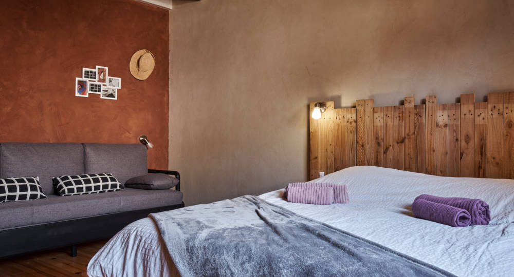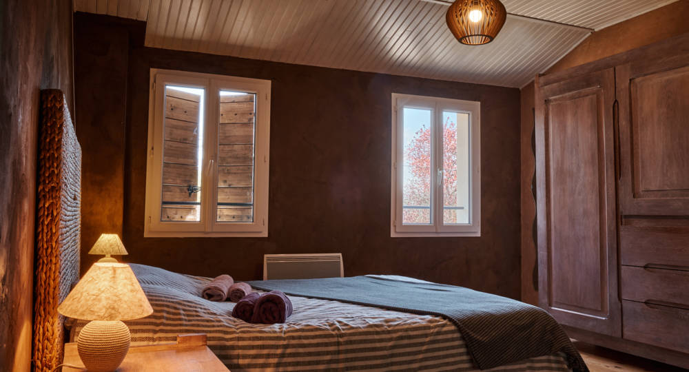 -> Chambre Est : Couchage double (140×190) pour 1 à 2 personnes.