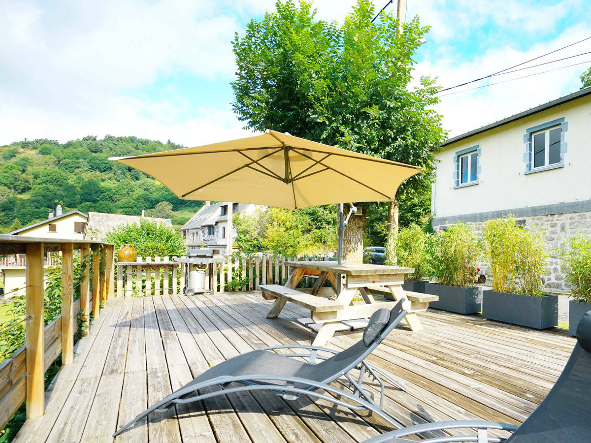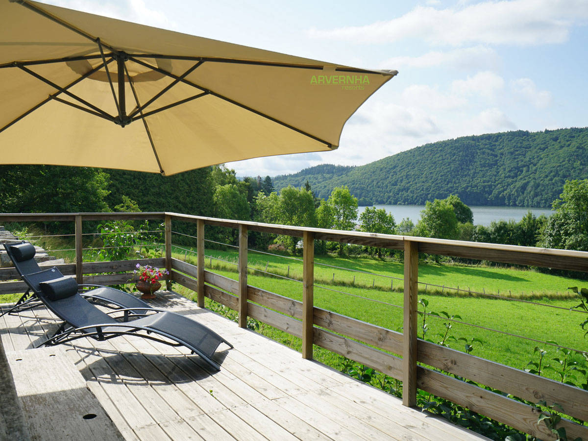 Pour jouir pleinement de la vue et du calme des lieux, une grande terrasse en bois a été aménagée en face du gîte, il suffit de traverser la petite rue et toute la vallée verte s’offre à vous, du lac Chambon au puy de Sancy, en passant par les plaines de Varennes et de Voissière, le village de Chambon sur Lac et la majestueuse et pittoresque vallée de Chaudefour.