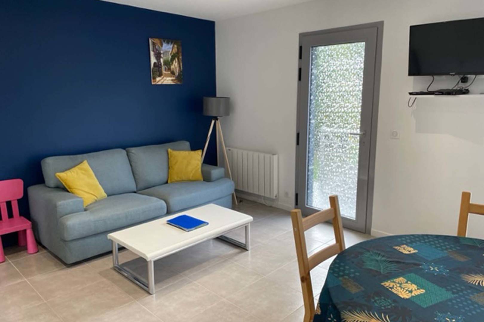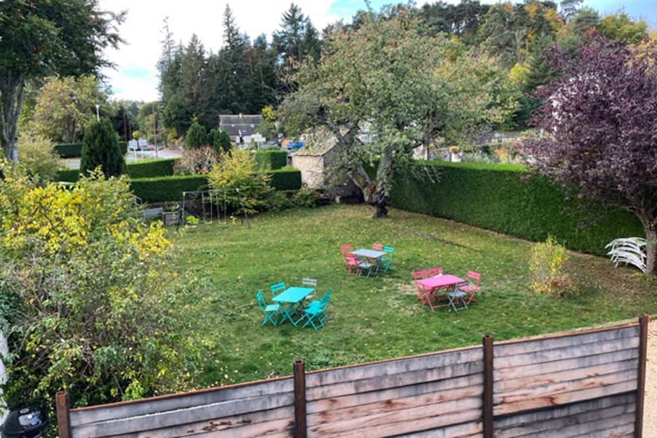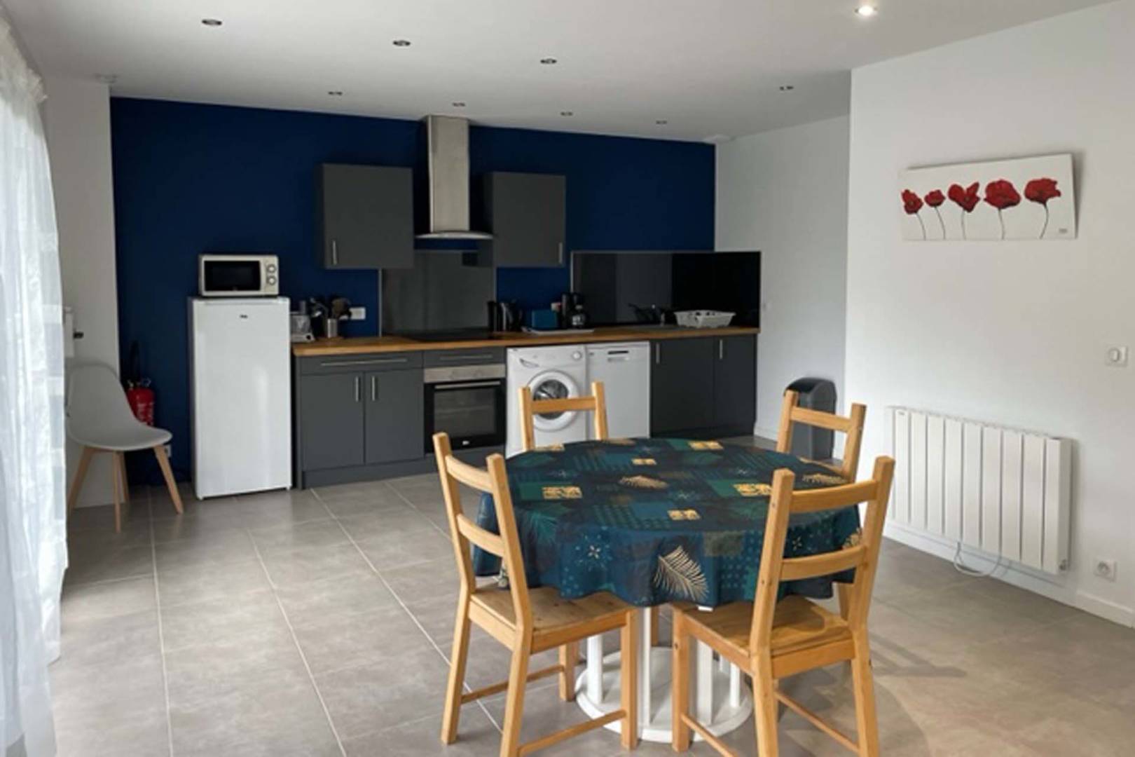 Situé au premier étage, avec balcon surplombant le terrain clos, le gîte dispose d’une cuisine ouverte sur le séjour/salon, 2 chambres, 1 salle d’eau + wc séparé. A l’extérieur, salon de jardin et jeux pour enfants, le terrain est à partager avec le gîte du rez-de-chaussée.