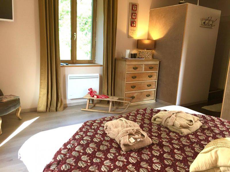 A l’étage : 3 chambres (1 lit 160, 1 lit 140 et 1 lit 90), 1 salle de bain avec 1 douche et 1 WC.