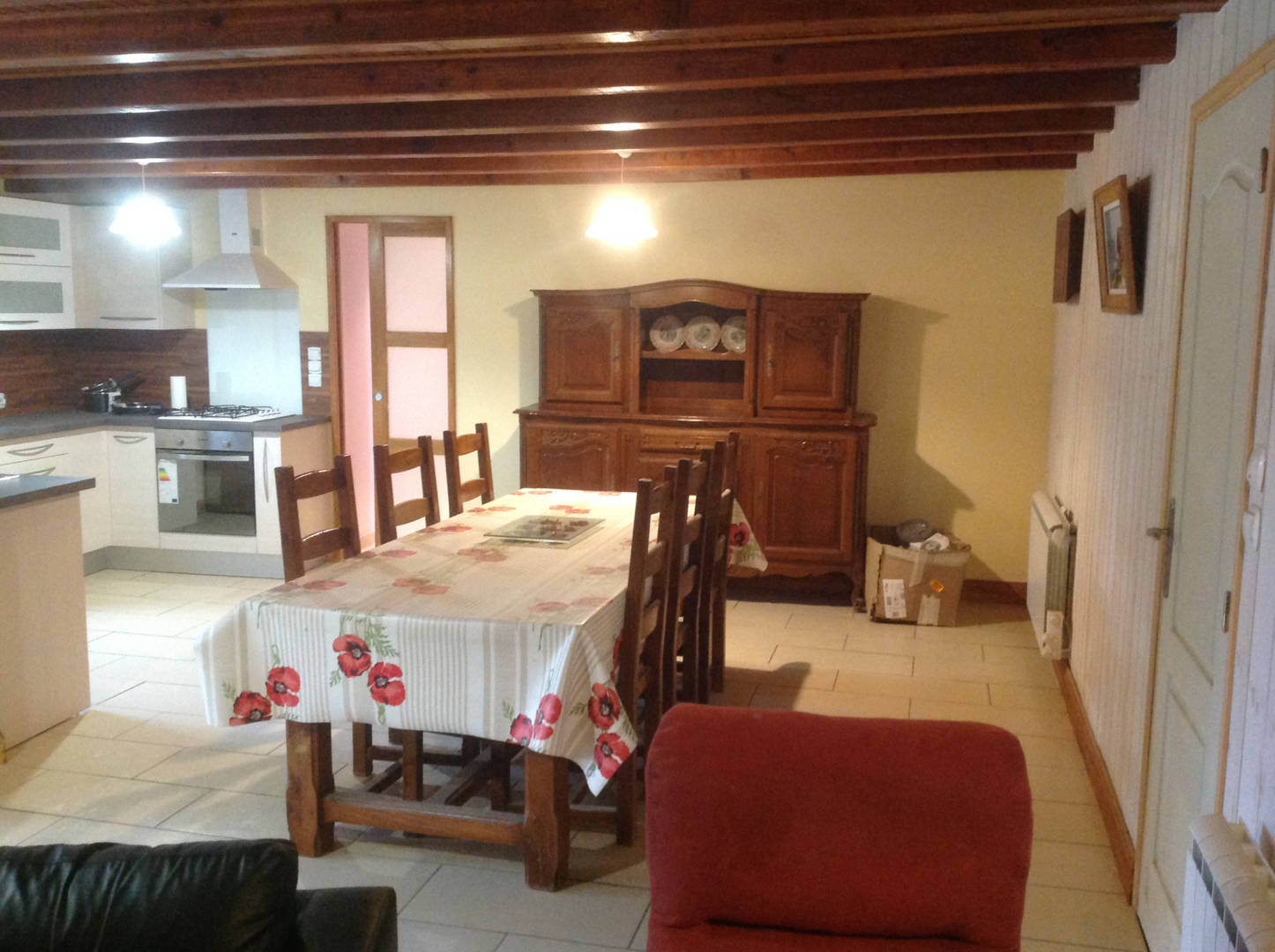 – au rez de chaussée l’entrée donnant sur la pièce de vie de 50 m², avec une cuisine bien équipée. Puis le couloir permet l’accès vers les WC, et la laverie.