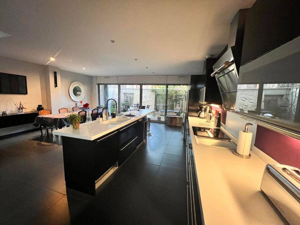 -d’une grande pièce de vie avec cuisine équipée ouverte sur le séjour avec accès au jardin