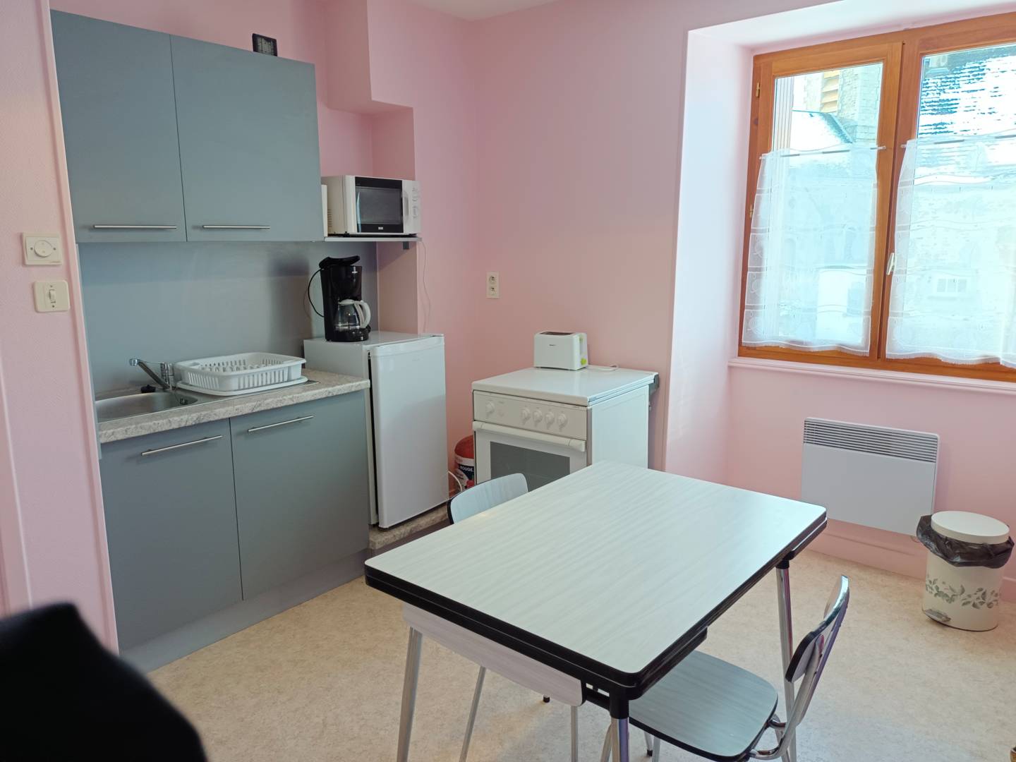 Logement pour 2 personnes, comprenant 1 chambre, 1 cuisine, 1 salle d’eau et un WC. cour commune; espace vert attenant.