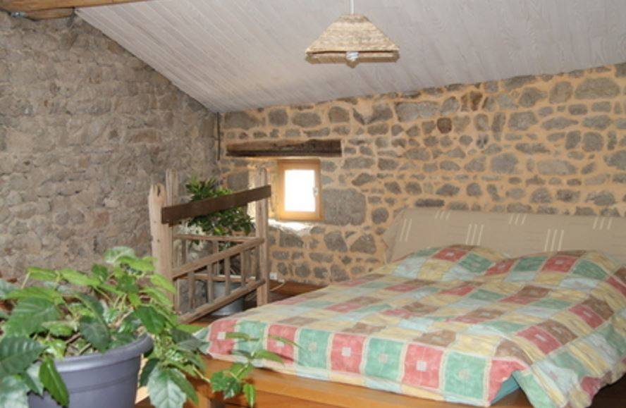 Logement indépendant, entièrement restauré, contigu à l’appartement de l’exploitante de la Ferme Équestre & Pédagogique, dans une maison traditionnelle, en pierre, de 45 m² sur deux étages.