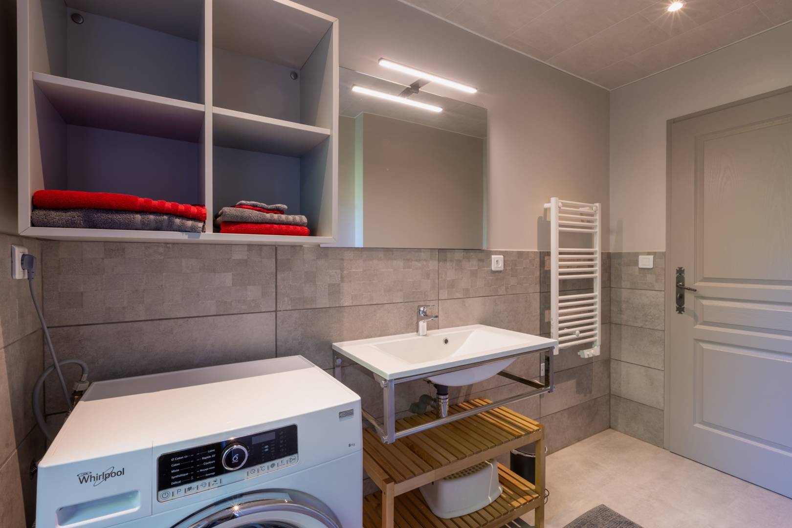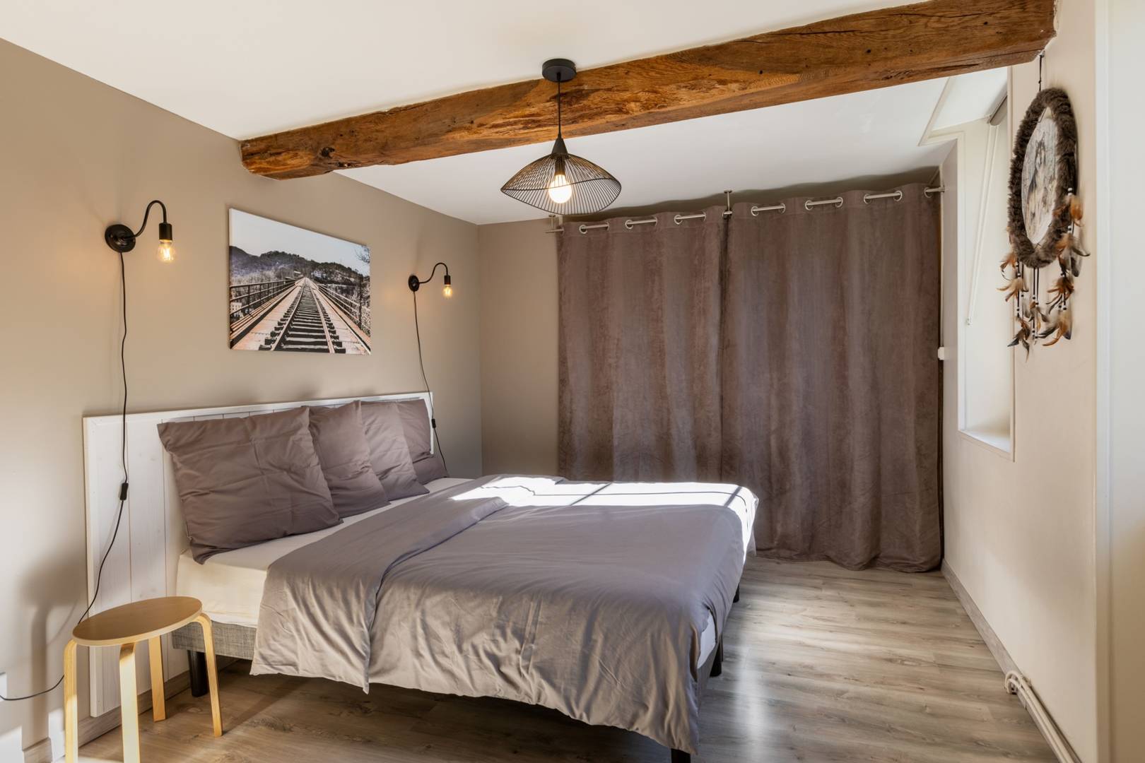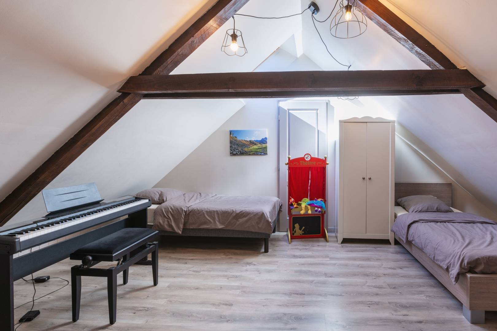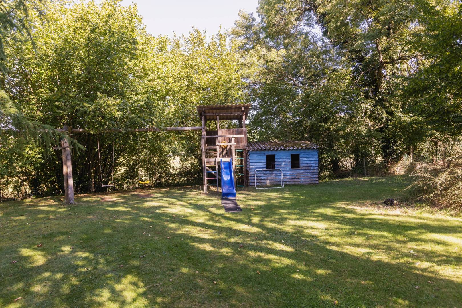 Grande maison comprenant 6 chambres, 3 salles de bain, grand salon avec cantou et poêle à bois, cuisine/salle à manger équipée pour 15 personnes, jardin clôturé et arboré de 3000 m² avec piscine (chauffée en été), aire de jeux, bbq, terrasse et transats.