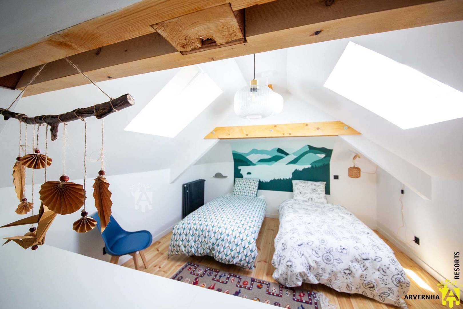 Au dernier étage sous les toits, vous découvrirez une chambre confortable avec deux lits simples de 90 cm, idéale pour les enfants ou les amis.
