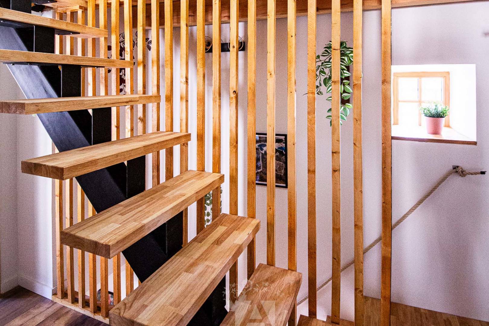 Au 1er étage se trouve un salon moderne équipé d’un Home cinéma pour des soirées mémorables. Ainsi qu’une première chambre double avec un lit de 160 cm. A cela s’ajoute une salle d’eau indépendante et élégante avec douche à l’italienne et WC.