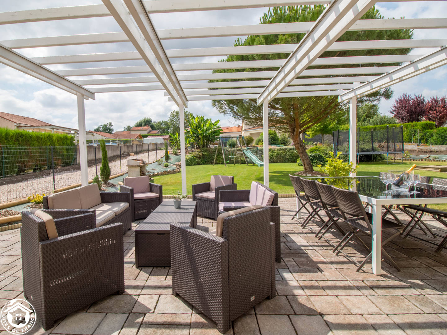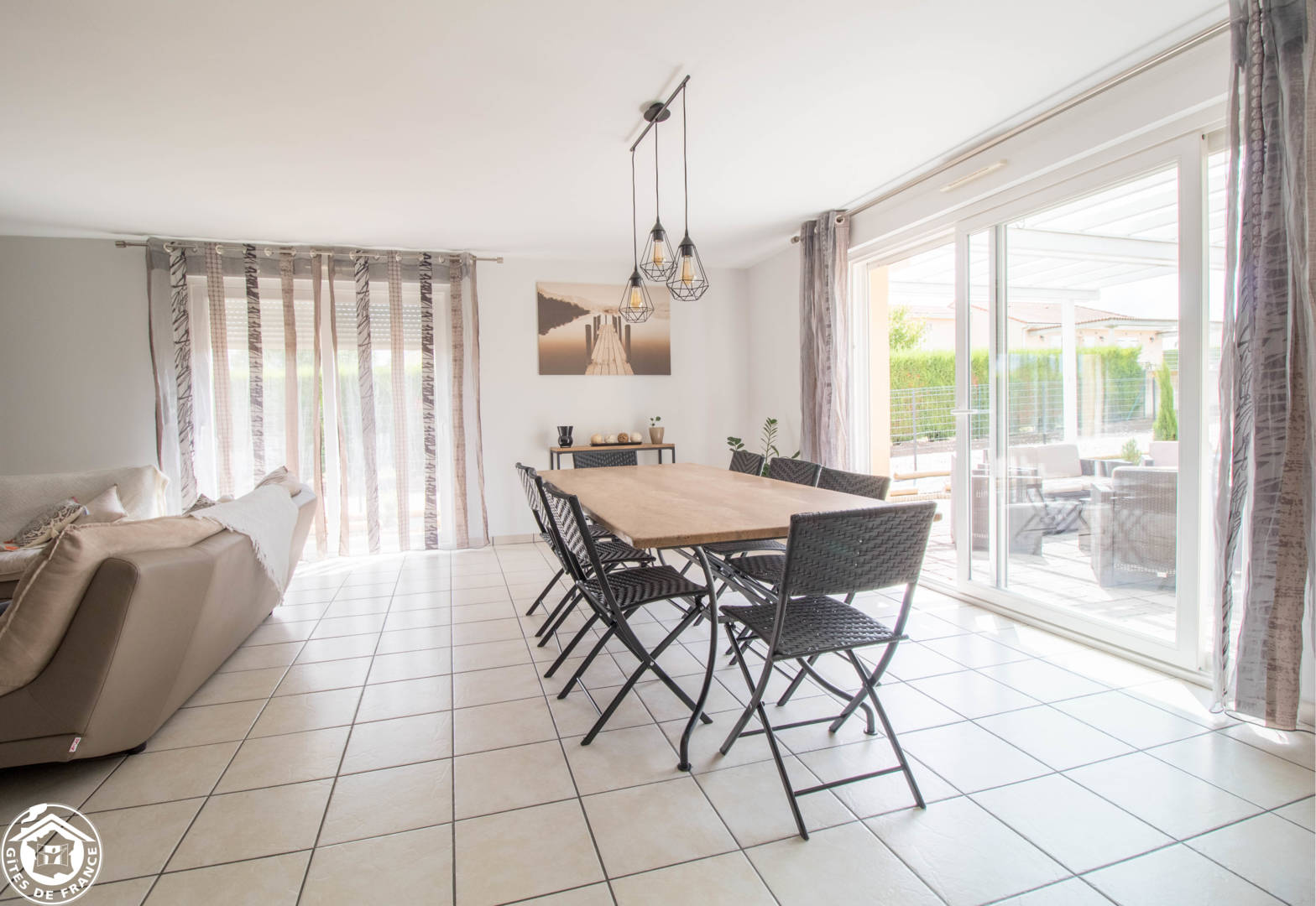 Vous pourrez profiter d’un grand terrain clos de 1000 m² avec trampoline, balançoire, bac à sable et d’une grande terrasse (pouvant être couverte) avec salon de jardin et de détente. Dans cette grande maison indépendante, vous aurez au rez de chaussée : une très belle pièce à vivre avec cuisine ouverte, 3 chambres avec chacune un lit de 160, une salle de bain avec douche et baignoire et WC indépendants. Au 1er étage, 1 chambre avec un lit 160, une autre avec dressing et salle d’eau. Garage 2 places et cellier.