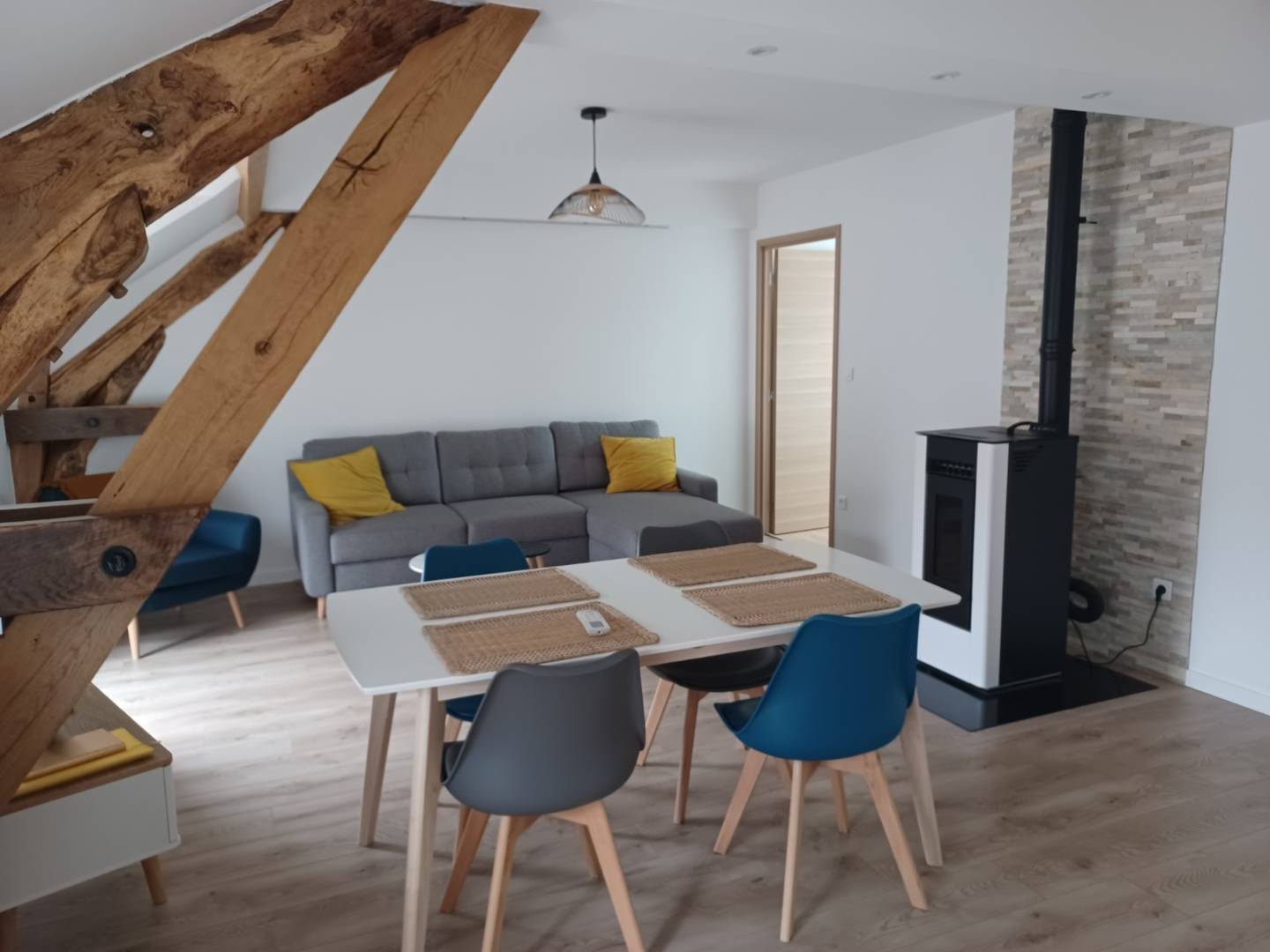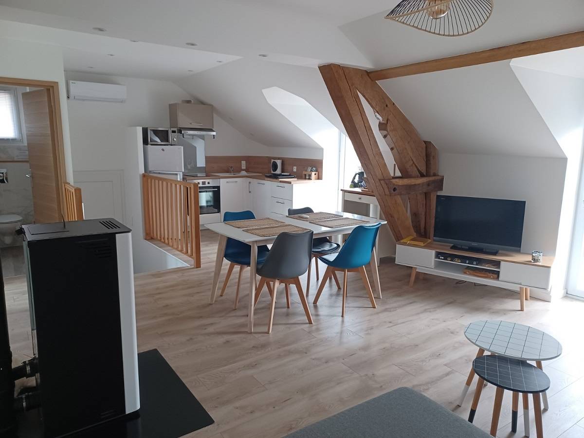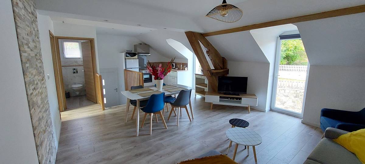 Composé de 2 chambres avec une literie de qualité, un canapé convertible et une cuisine ouverte, l’hébergement peut accueillir jusqu’à 6 personnes. Dans un esprit cocooning, vous vous sentirez heureux. Nous vous accueillerons pour les courts et longs séjour.