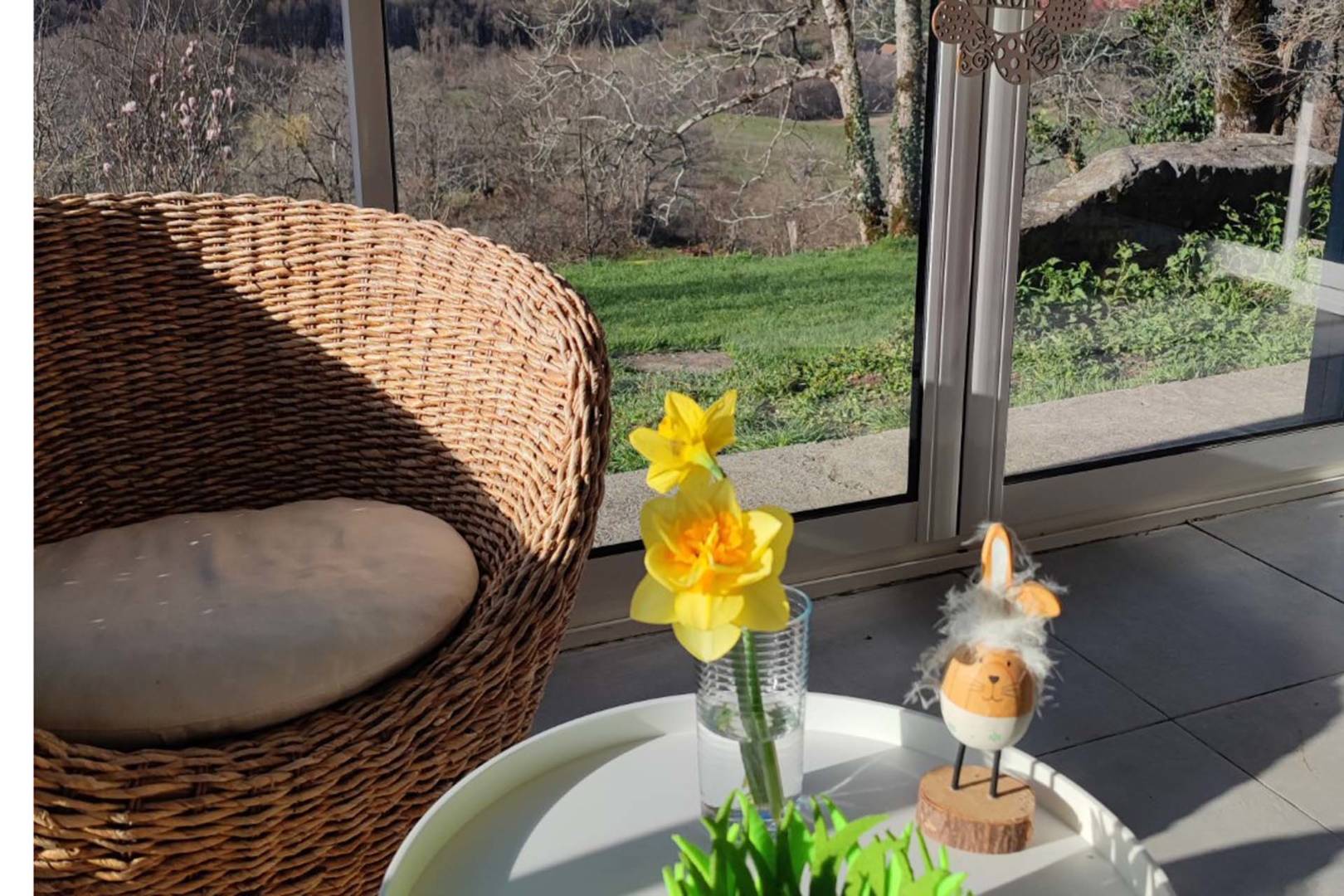 Notre gîte accueille chaleureusement les visiteurs avec son ambiance rustique et ses commodités modernes. Détendez-vous près de la cheminée ou admirez la vue depuis la véranda qui change avec les saisons, offrant un spectacle continuellement renouvelé.