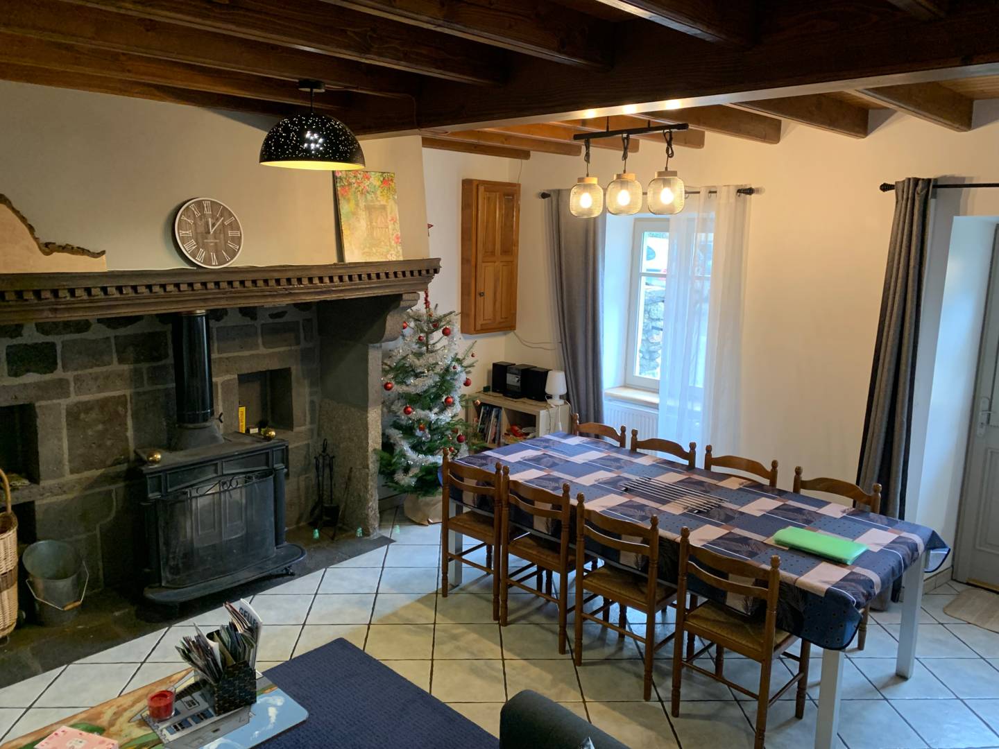 Maison de campagne sur trois niveaux avec une cour fermée et un garage pour deux véhicules. Le rez-de-chaussée a une buanderie, une salle de bain avec toilette, une cuisine ouverte (toute équipée) sur un coin repas et un salon avec une cheminée à bois (bois fournis gratuitement). Le 1er étage(…)