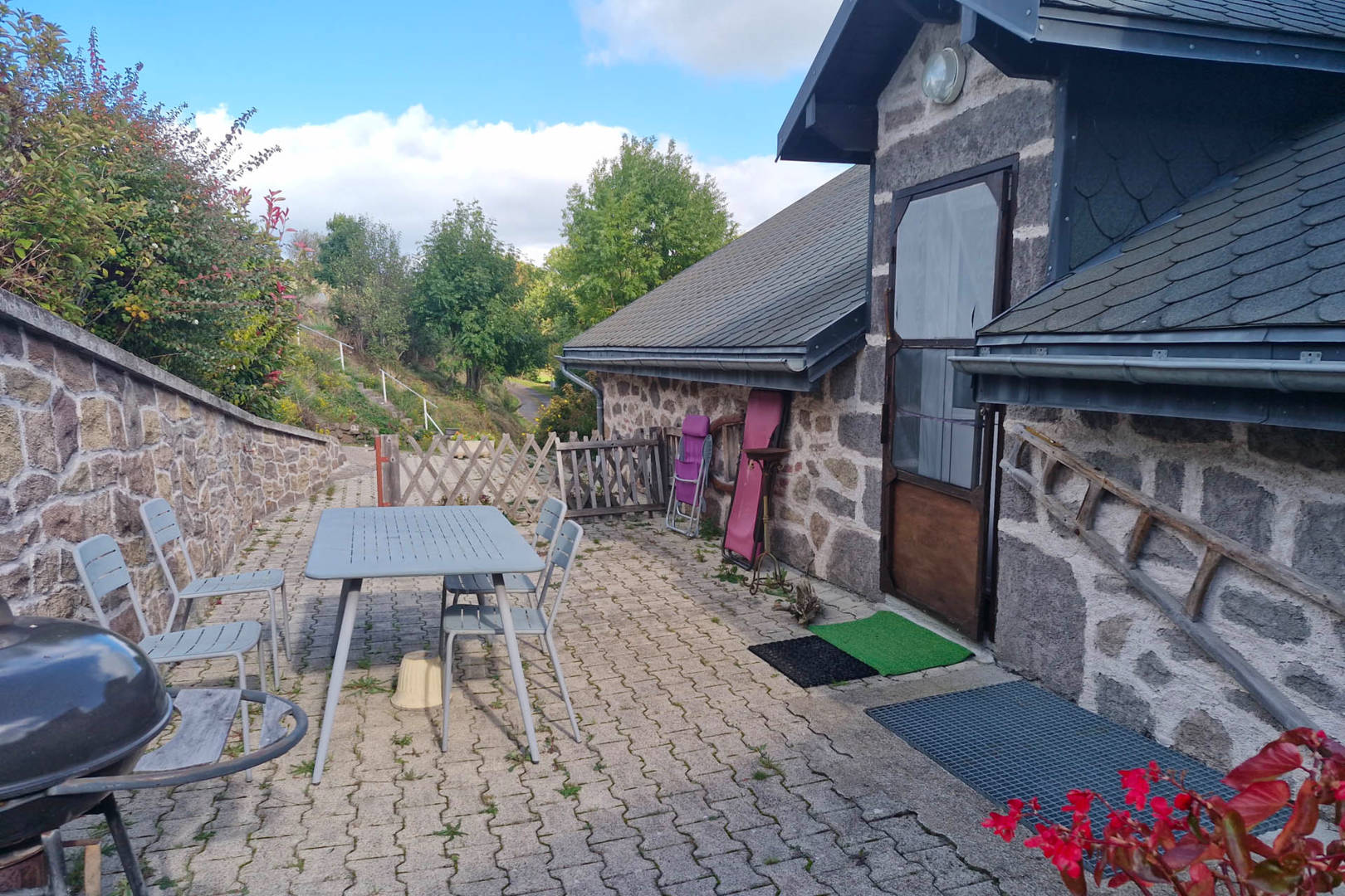 De plein pied, vous accédez au gîte par la terrasse close.