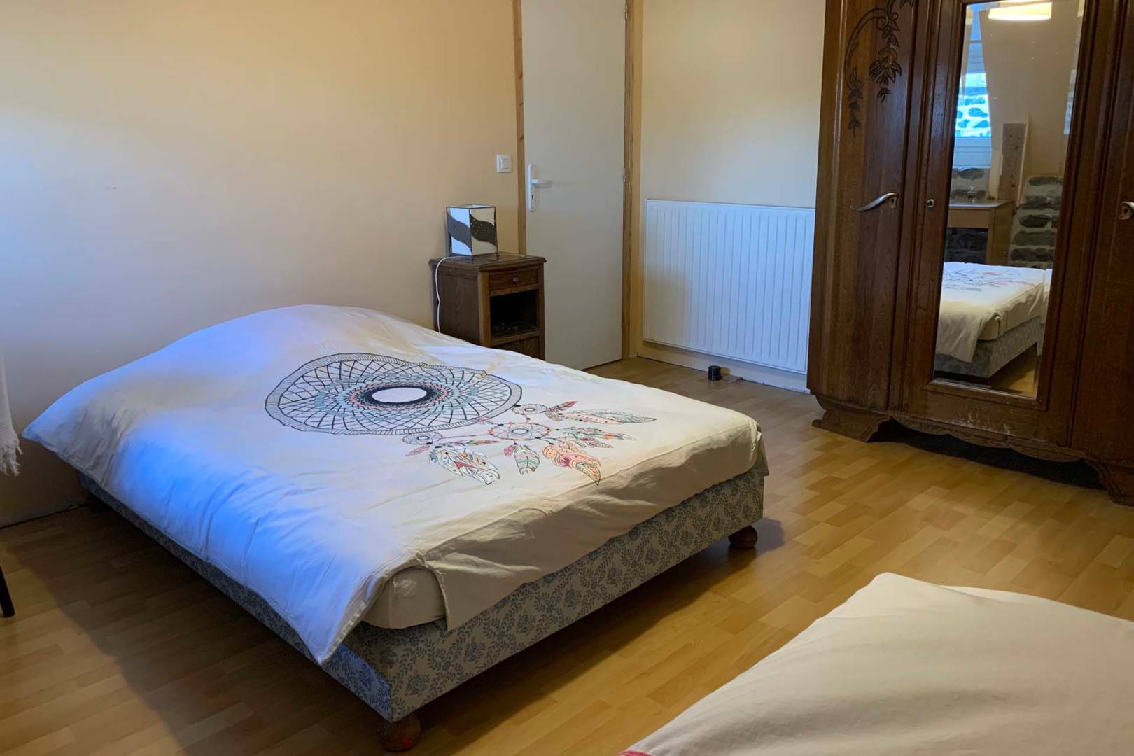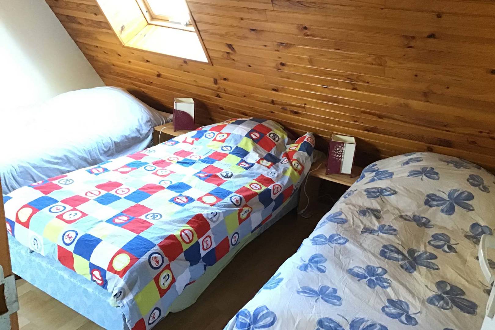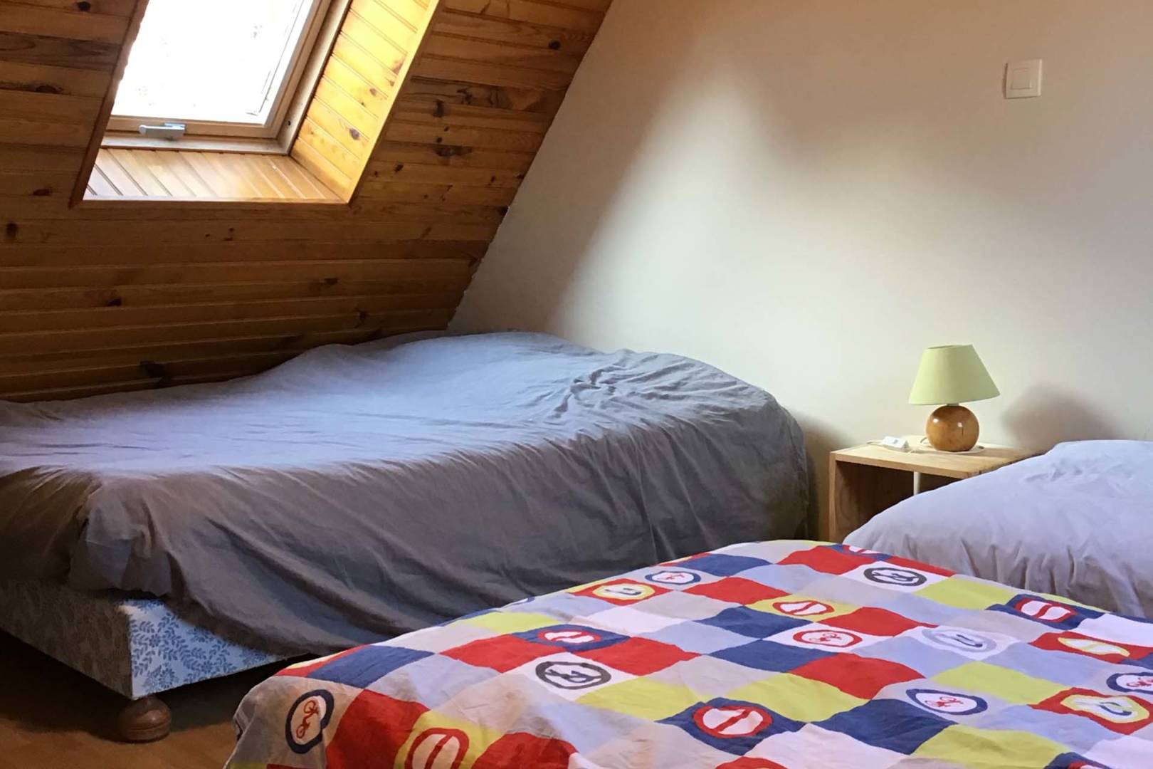 – un dortoir avec un lit double et 3 lits simples et la chambre blanche avec 1 lit double