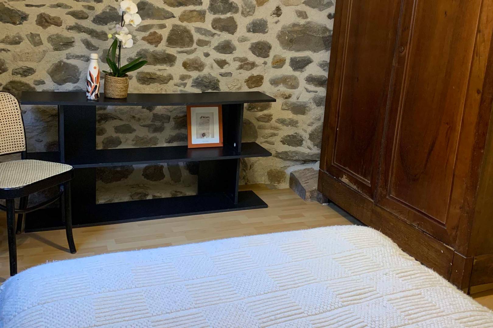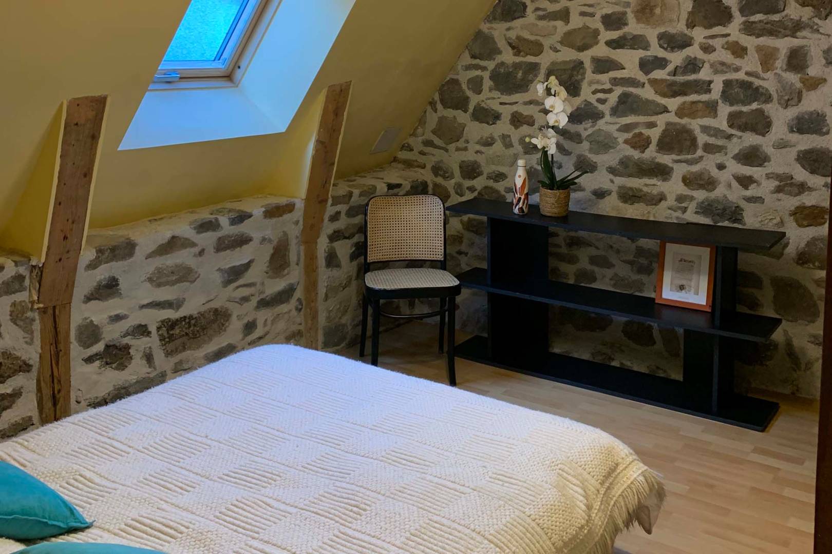 Au niveau équipement, il n’y a pas de wifi (pas d’abonnement internet), la télévision n’est plus raccordée à la TNT mais peut servir d’écran via un câble HDMI (via le réseau 4G qu’on capte dans la maison). Déconnexion assurée !