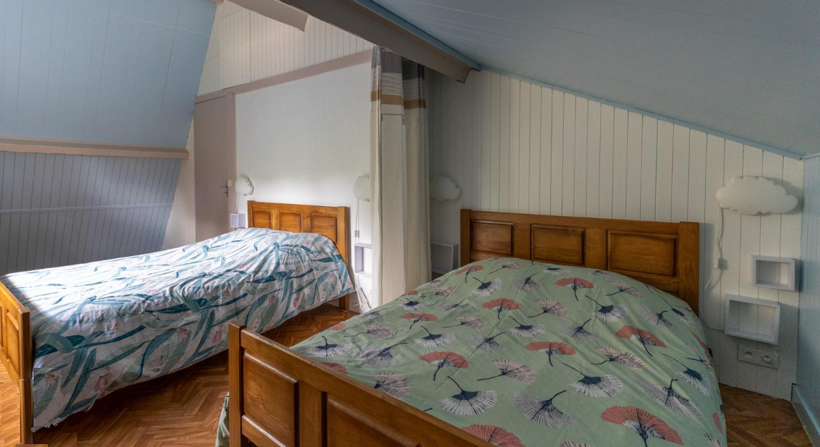 Idéalement pour 10 personnes, ce gîte peut pourtant accueillir jusqu’à 13 personnes. Un clic-clac dans le salon peut accueillir 2 personnes supplémentaires et un petit clic-clac 1 personne est également installé dans la grande chambre qui dispose déjà de 2 lits doubles.