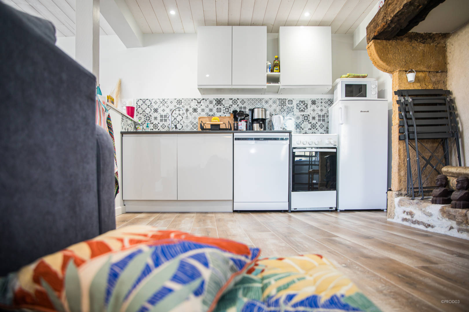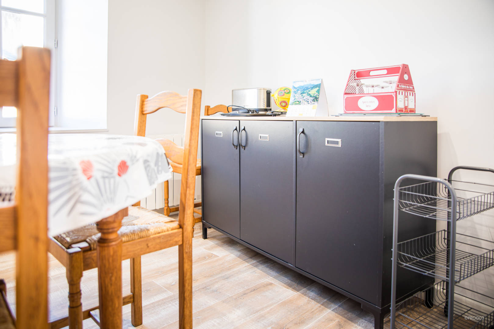 Vous disposerez d’une grande pièce à vivre avec un coin cuisine équipée donnant sur un balcon où vous pourrez prendre vos repas.