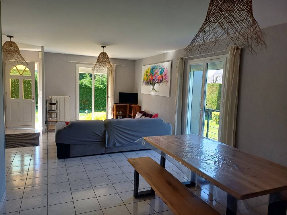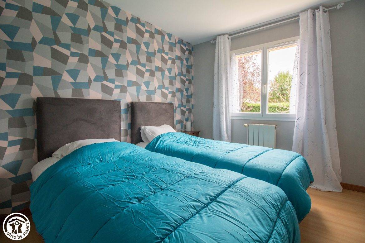 Maison indépendante de plain-pied (juste une marche à l’entrée), elle se compose d’un séjour-cuisine vaste et lumineux, de deux chambres avec deux lits 90 chacune (pouvant être accolés), d’une buanderie, d’un wc indépendant et d’une salle de bain.