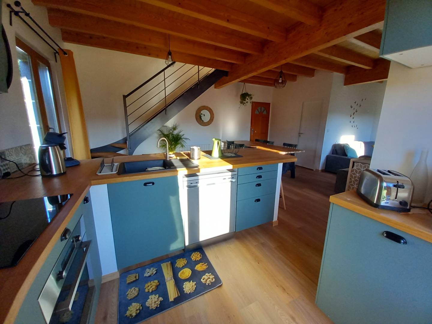 – Cuisine entièrement équipée (table cuisson/four/réfrigérateur/micro-onde/lave –