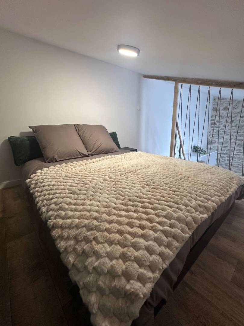 Profitez de tout le confort nécessaire pour passer un agréable séjour avec son coin cuisine tout équipée, son coin salon cocooning se transformant en un couchage confortable sans effort; Vous disposez d’une terrasse privée avec salon de jardin et barbecue; A la belle saison, après vos visites ou randonnées, vous pourrez profiter de la belle piscine partagées avec les chambres d’hôtes (heures d’ouverture affichée sue le site de la piscine). Vous aurez la possibilité si vous le désirez pour profiter pleinement de vos vacances de prendre l’option petit déjeuner et/ou table d’hôtes.