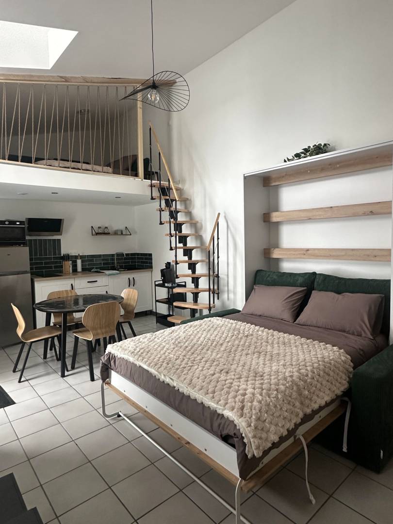 un couchage lit double 140 X 200 en mezzanine un couchage lit double 140X200 par lit escamotable dans la pièce de vie