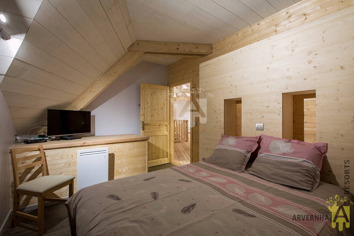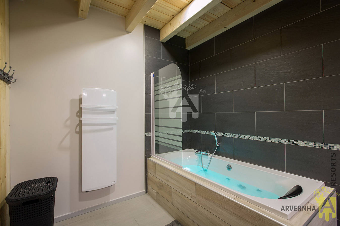 Cet hébergement a été conçu en étroite collaboration avec Arvernha Resorts, offrant ainsi tous les aménagements qui rendent vos vacances plus agréables : une chambre avec balcon pour profiter de la vue au lever du jour, une suite parentale avec sa propre salle de douche, une salle de bain avec baignoire balnéo, une salle d’eau avec une grande et confortable douche à l’italienne, une grande mezzanine avec espace de jeu pour les enfants, un poêle à bois avec bois à disposition, Wi-Fi fourni, un grand écran plat avec Canal+, une colonne bluetooth, une cuisine parfaitement équipée (2 services à fondue, crêpière, 2 réfrigérateurs, micro-ondes, lave-vaisselle) et un comptoir avec rangement à bouteilles de vin intégré pour des séances d’apéro entre amis.