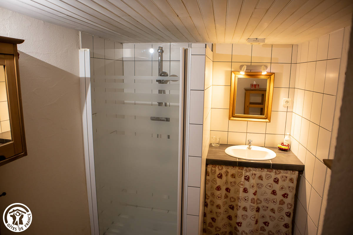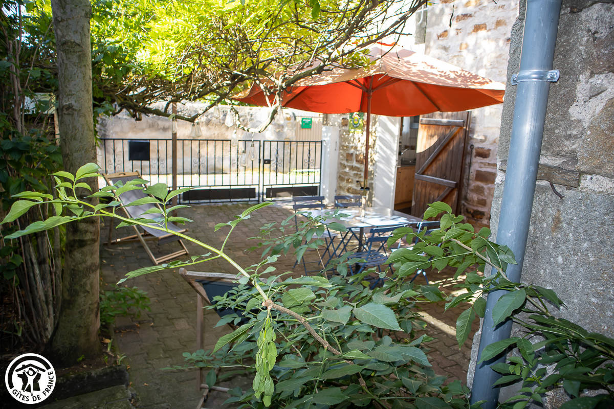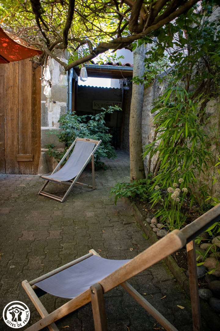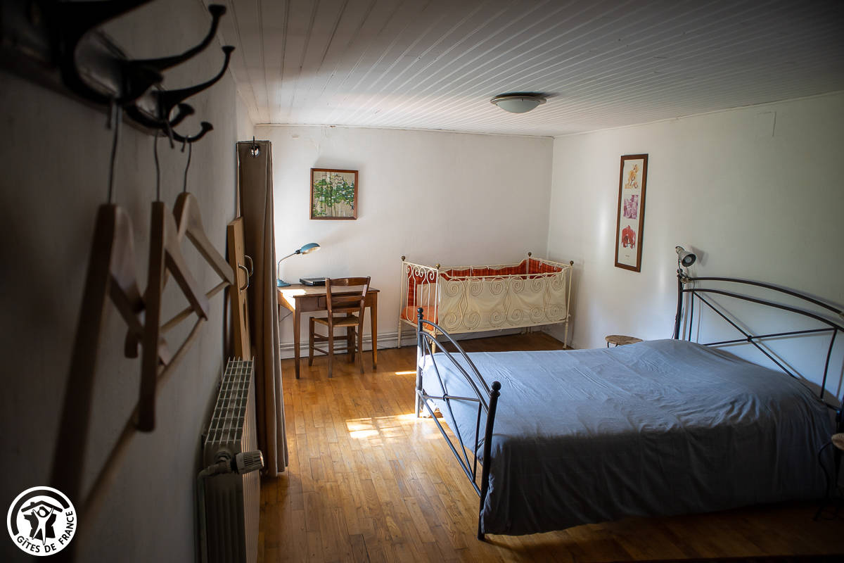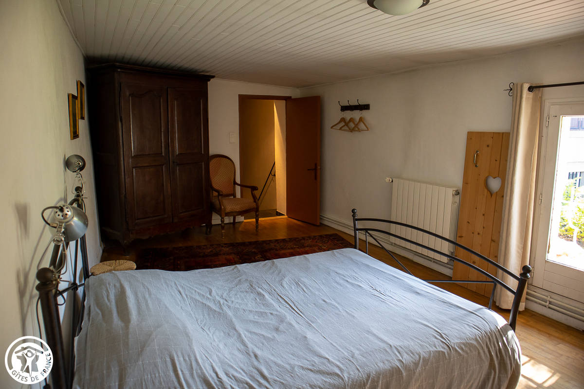 Au 1er étage : une chambre (1 L + 1 lit bébé), kit bébé à disposition. Salle d’eau. Cour arborée fermée. Chauffage au gaz compris.