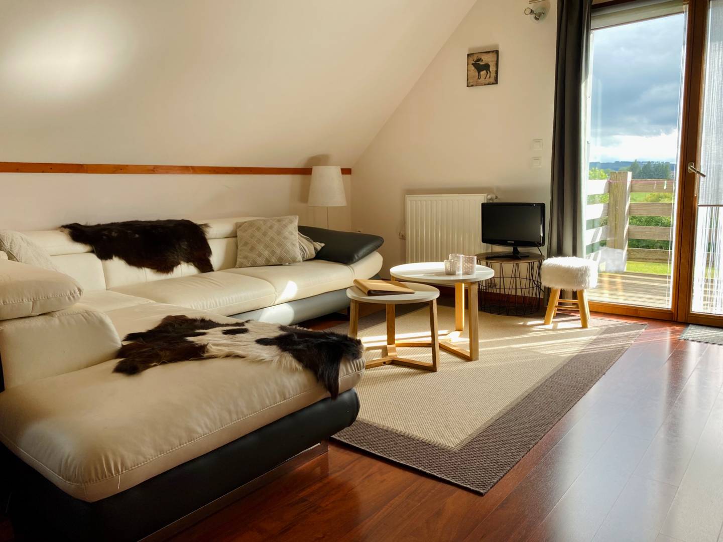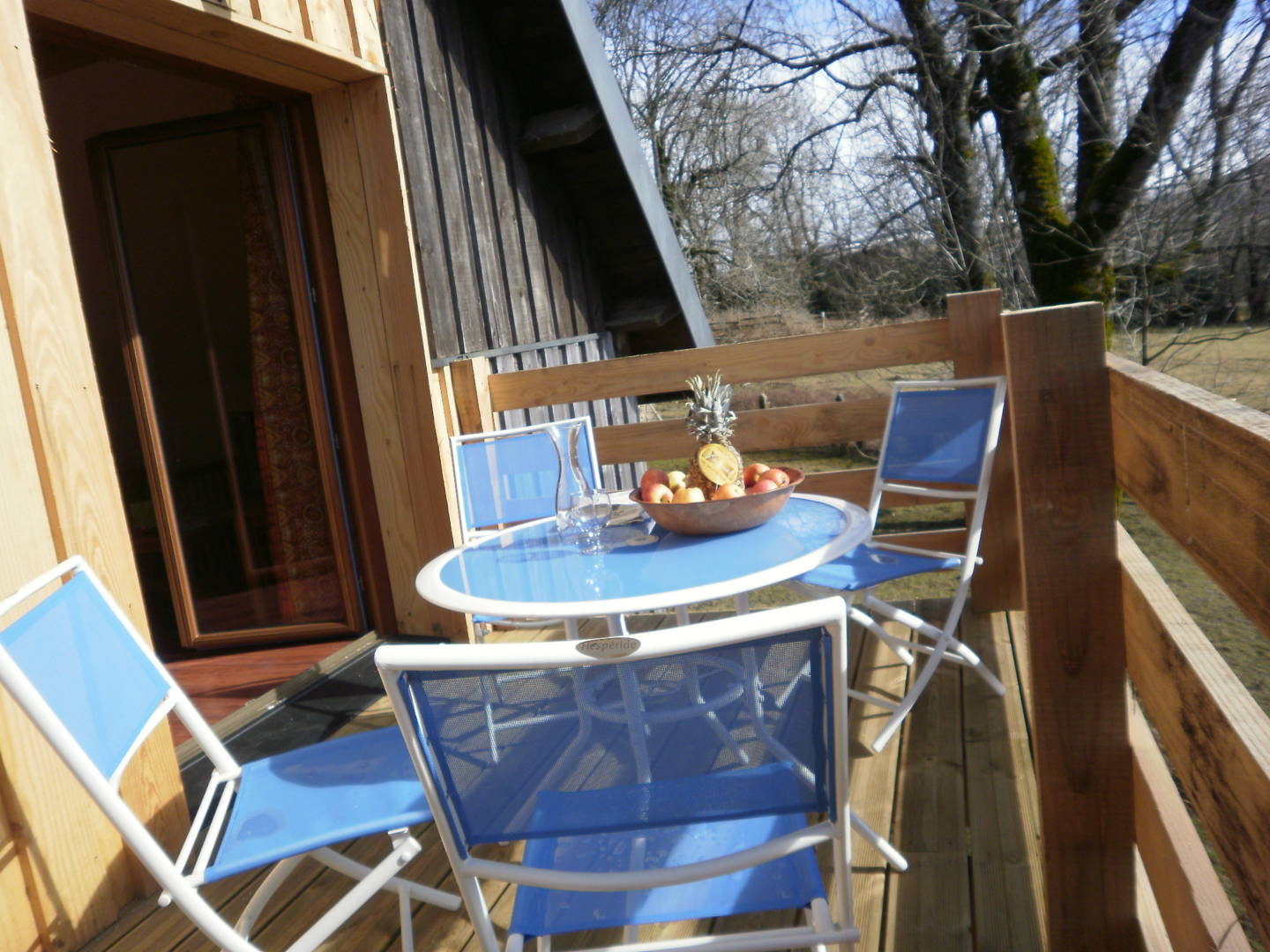 terrasse, vous découvrez un balcon orienté sud donnant sur le jardin, les alentours et le Massif de Sancy.