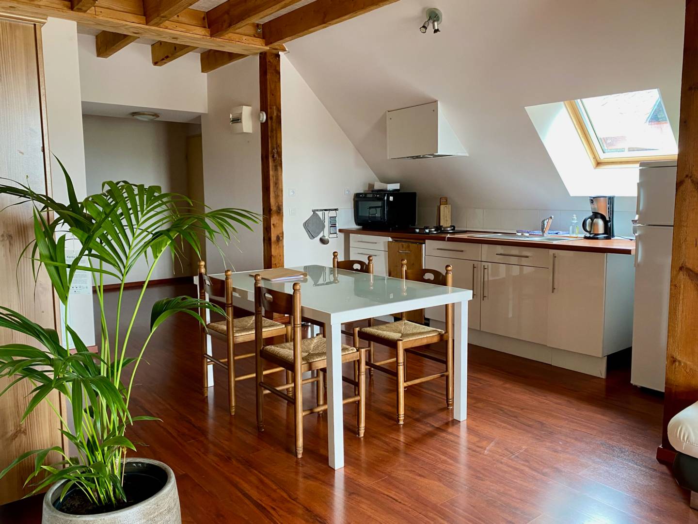 Dans une ancienne grange de 1890, 5 appartements meublés et très confortables (classés ***) sont à louer toute l’année. Ils sont tous situés au premier étage, sous la toiture, au-dessus de la vieille étable qui a été transformée en salle de loisirs. Chaque appartement possède sa propre terrasse privée qui donne sur le magnifique Massif de Sancy dans le Parc Naturel Régional d’Auvergne. Il y a aussi 2 gîtes (***) orientés sud dans l’une des dépendances avec accès immédiat au jardin.