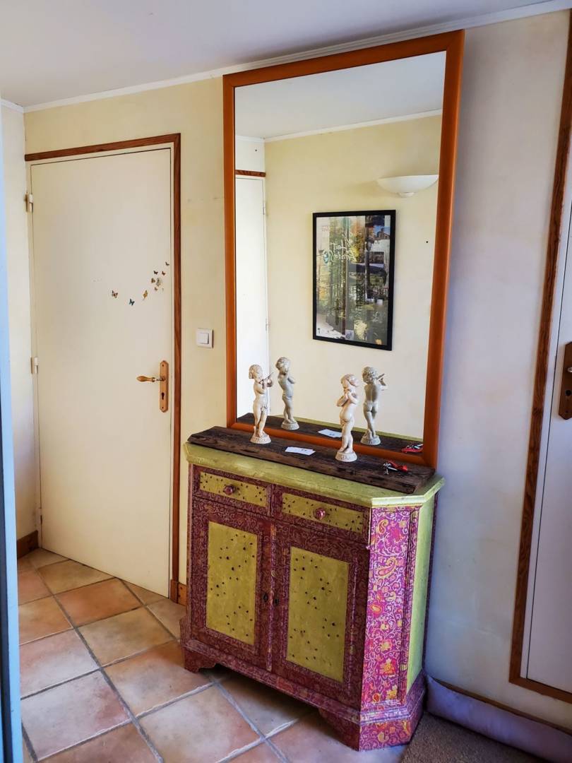 Un couloir distribue les deux autres chambres : l’une avec un lit de 160, l’autre avec deux lits de 90. Salle de douche avec deux vasques, machine à laver, table à langer. Toilettes séparées. Parquet d’époque sur tout ce niveau.