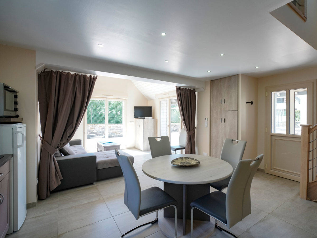 – un couchage d’appoint pour deux personnes, possible dans le séjour : canapé lit de 140 cm.