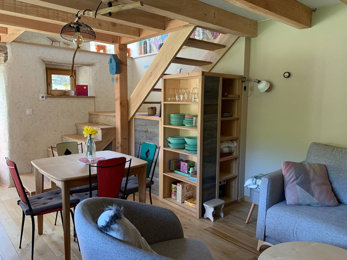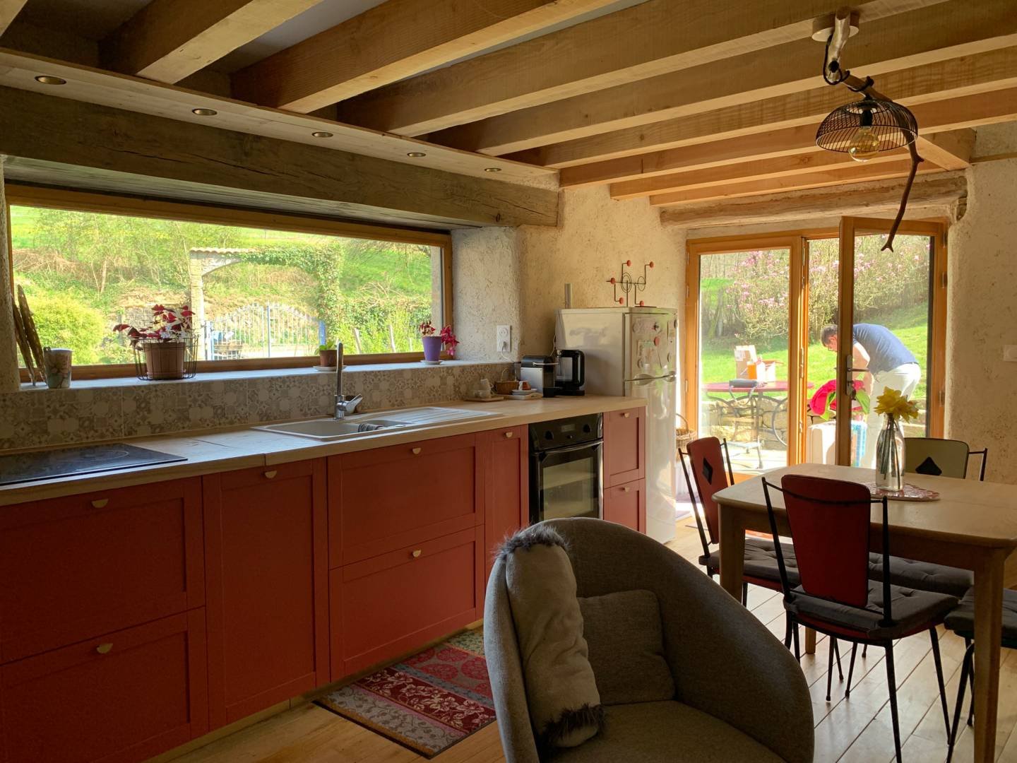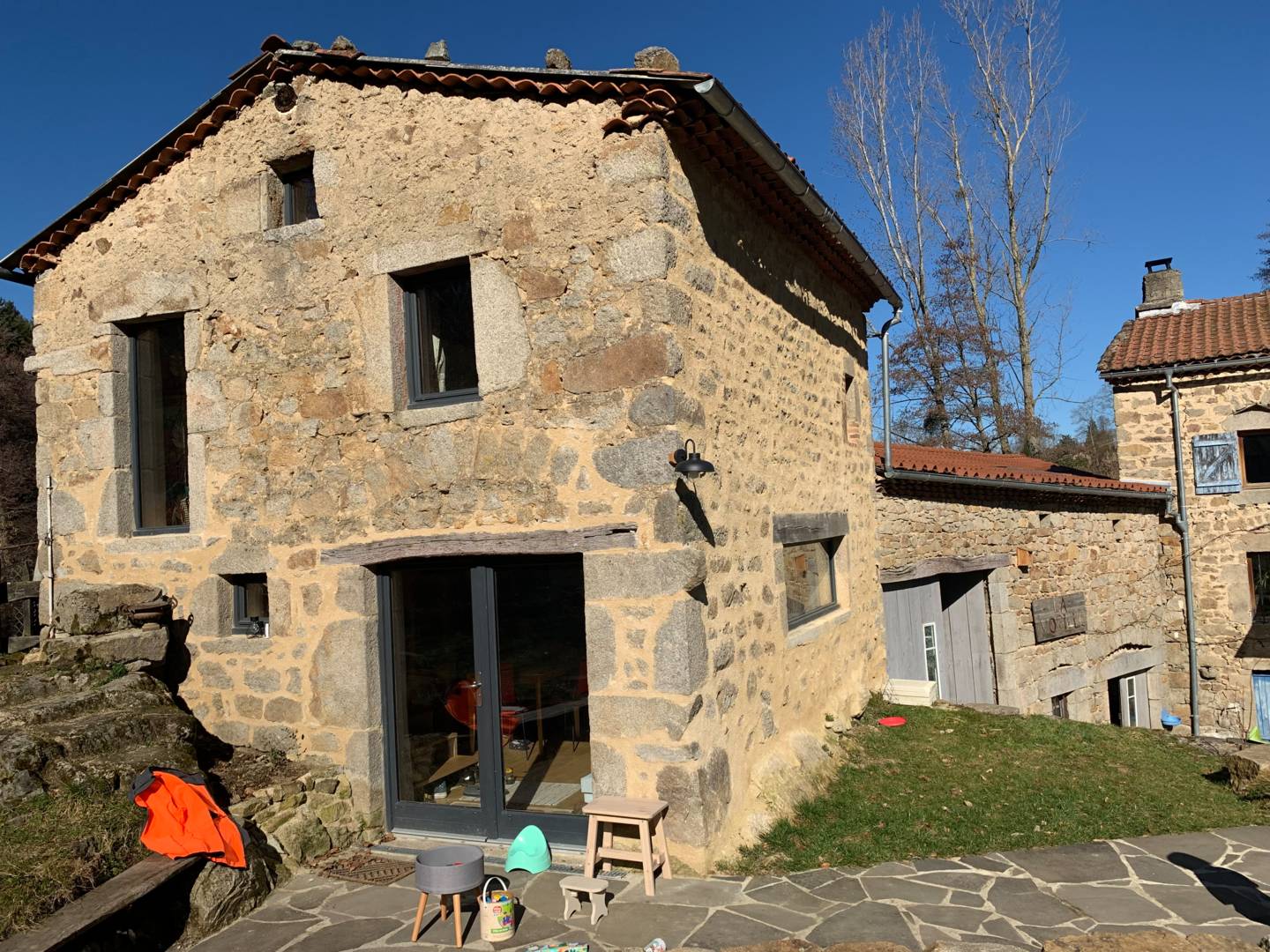 Nous avons craqué en 2018 pour cet ancien Moulin qui était « dans son jus » . Vosgiens encore aujourd’hui, nous voulions pouvoir rendre visite à nos enfants auvergnats le plus souvent possible. Nos deux aînés viennent de s’installer sur une ferme d’élevage de vaches laitières dont ils transforment le lait en Yaourts, fromage blanc et faisselles. Une partie de la maison étant habitée par notre fille et sa famille, nous avons voulu rénover un petit cocon juste pour nous et pour vous maintenant.