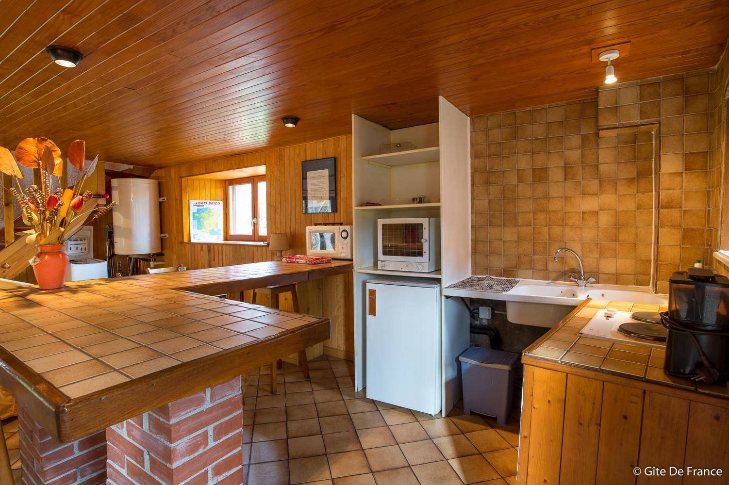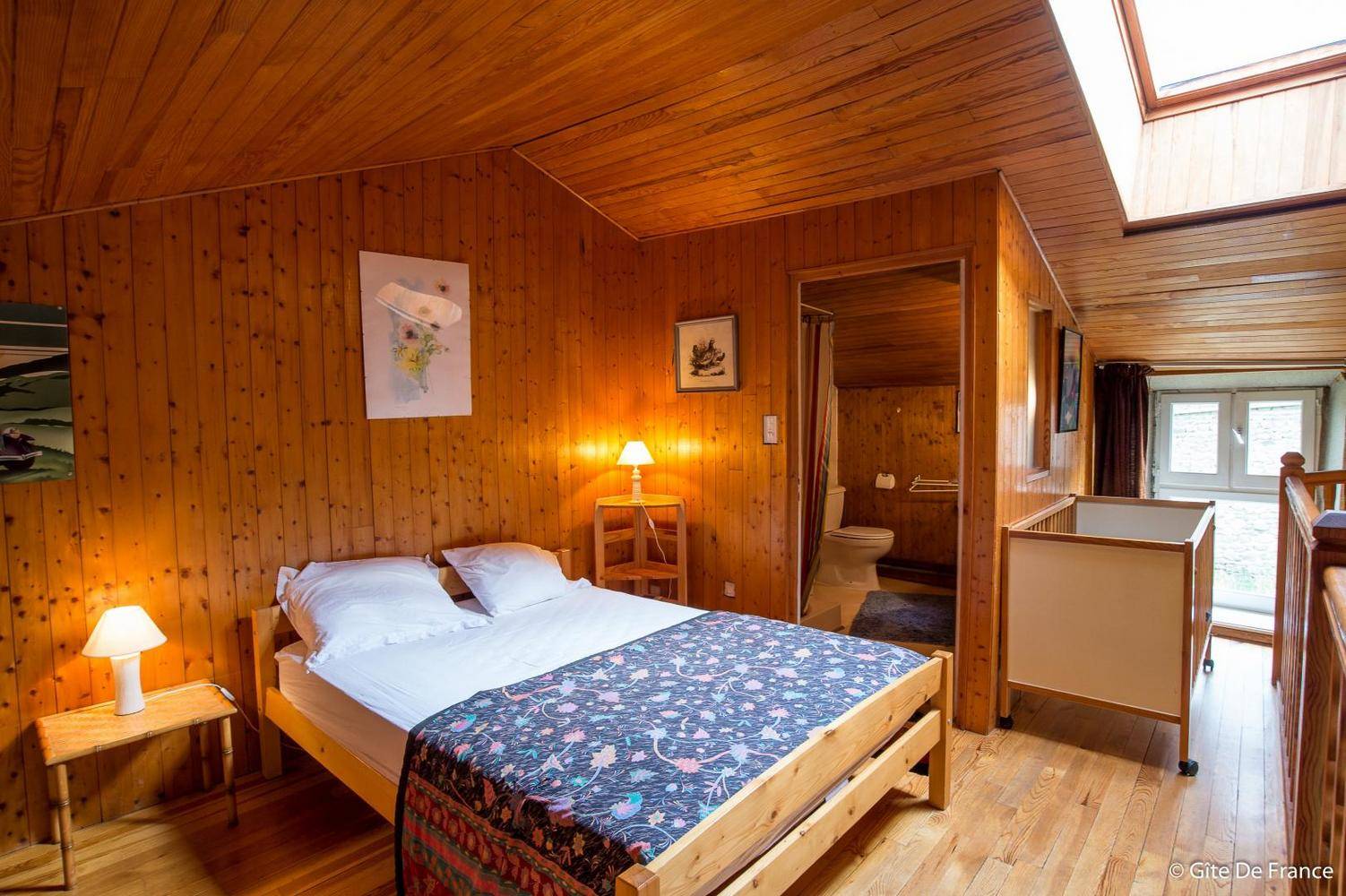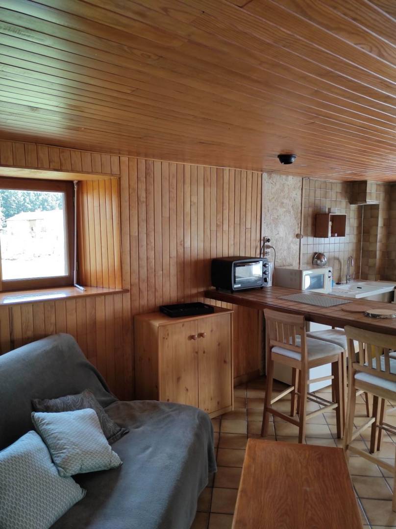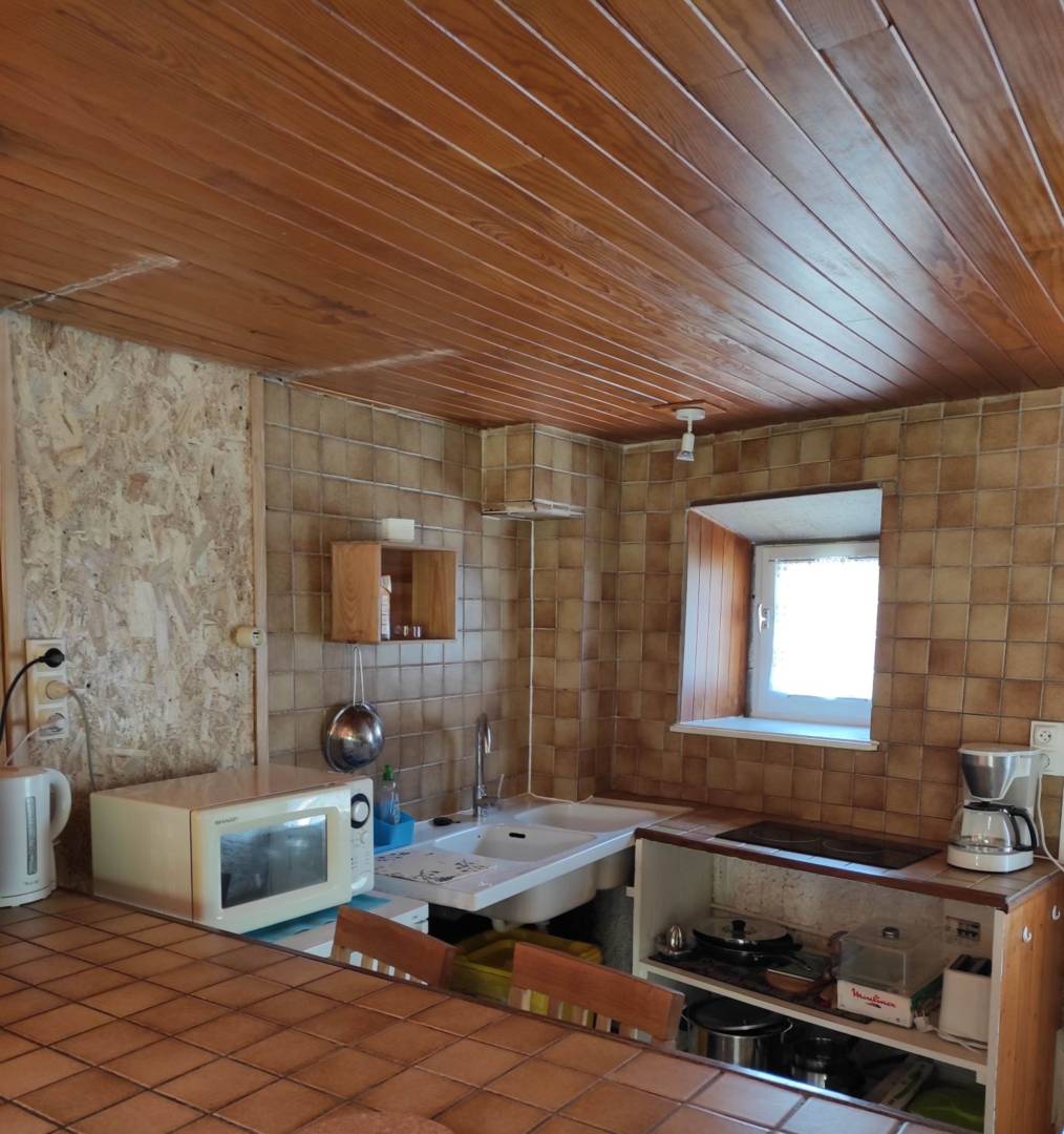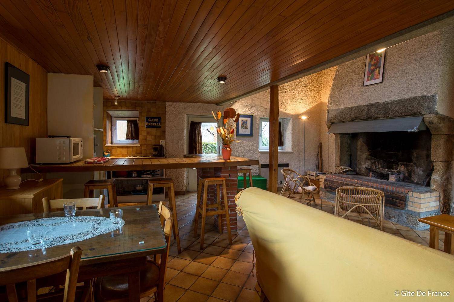 Le gîte se situe à proximité immédiate de la maison d’habitation des propriétaires. Il se compose au rez de chaussée d’un séjour, cuisine avec une grande cheminée à foyer ouvert. En mezzanine un espace nuit (lit 140), une salle d’eau et WC. Terrasse et terrain non clos avec une jolie vue dégagée sur la nature environnante. Parking privatif devant le gite. Local vélos fermant à clés sur demande. Chauffage électrique inclus. Bois 30 € la demie stère.