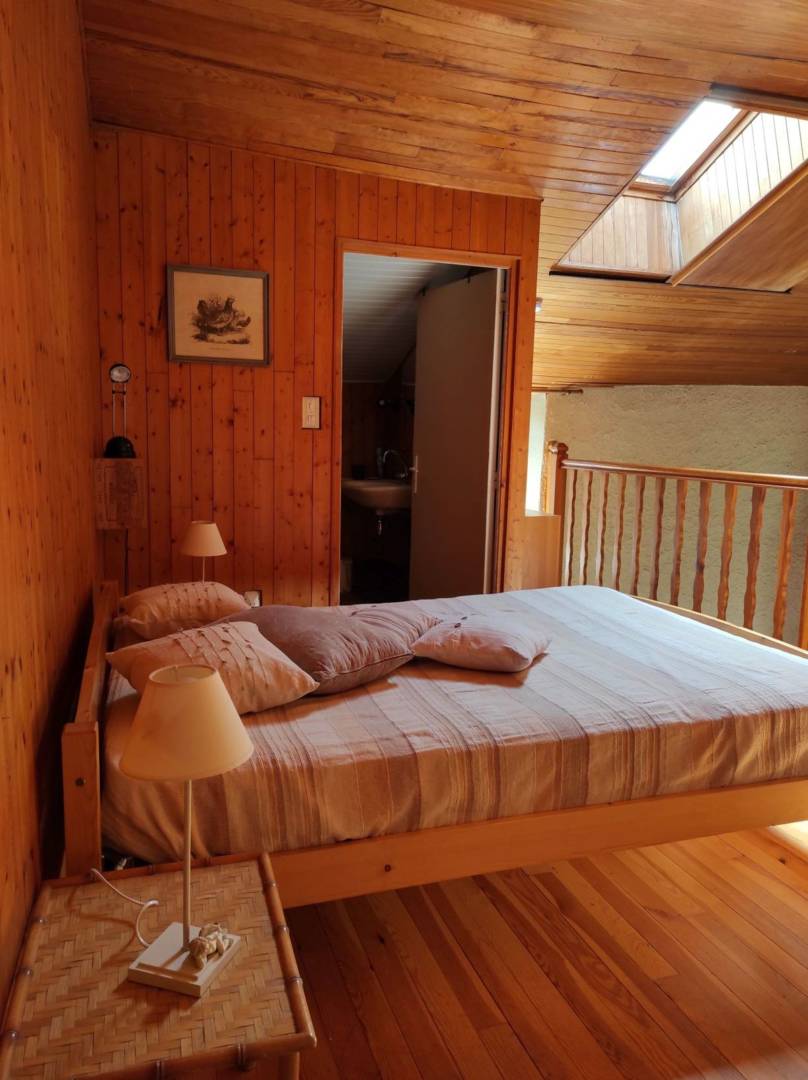 Le gîte se situe à proximité immédiate de la maison d’habitation des propriétaires. Il se compose au rez de chaussée d’un séjour, cuisine avec une grande cheminée à foyer ouvert. En mezzanine un espace nuit (lit 140), une salle d’eau et WC. Terrasse et terrain non clos avec une jolie(…)