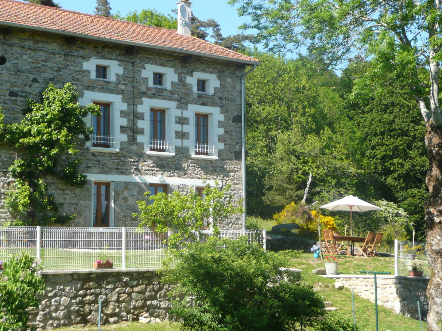 Terrain attenant non clos avec terrasse. Emplacement parking privé, garage avec baby-foot et ping-pong. Chauffage granulés au bois par le sol en hiver et électrique en été inclus. Commerces et services à Viverols 6 kms. Connection WI-FI