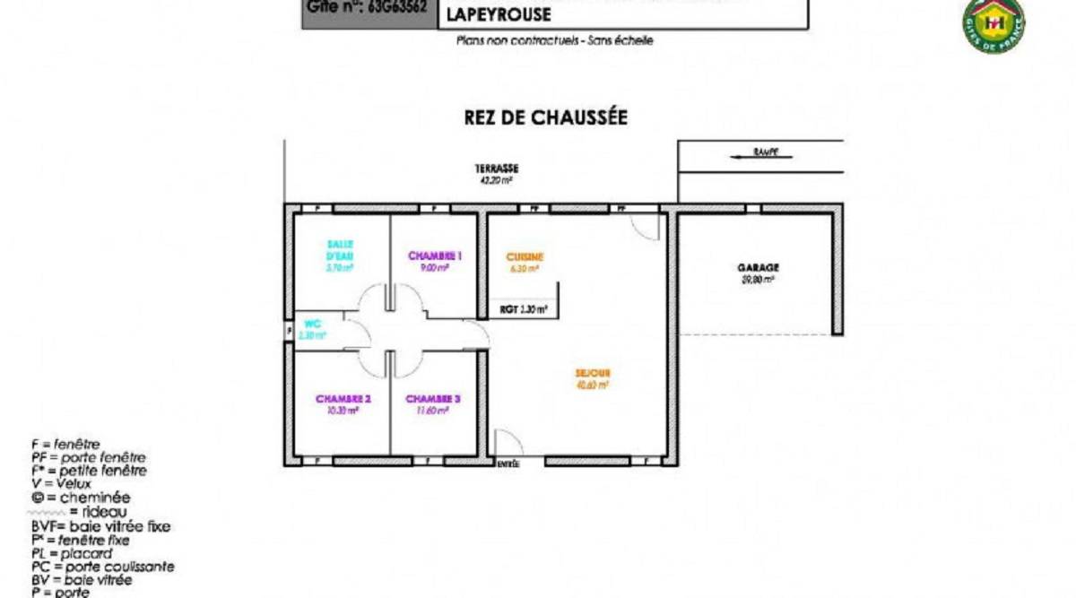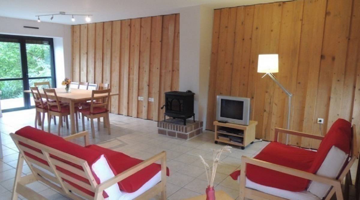 Salle de séjour, cuisine ouverte, salle d’eau, WC, 3 chambres (1 lit 2 pers., 2 lits 1 pers., 2 lits 1 pers. pouvant être accolés). Terrasse, abri voiture, terrain attenant non fermé. Chauffage électrique en supplément selon consommation. Bois fourni gratuitement.