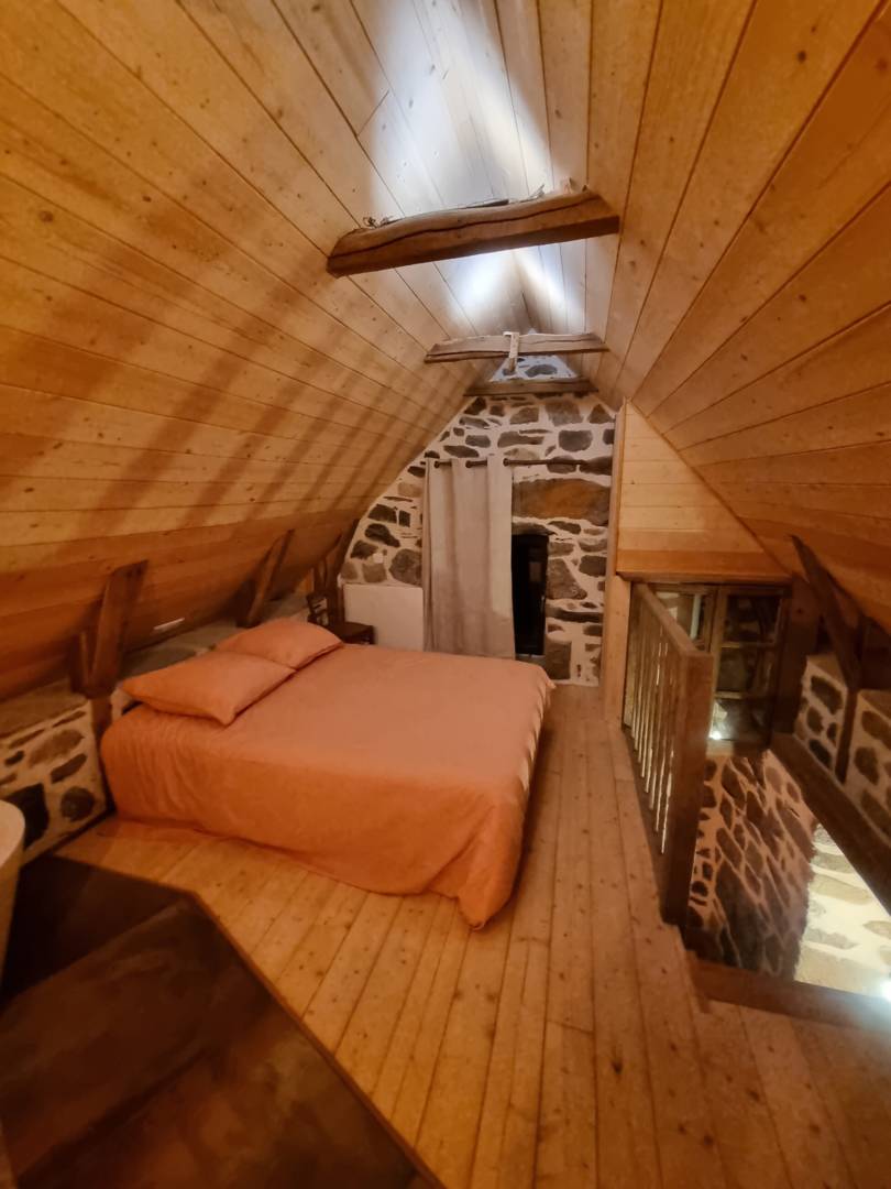 Le gite est composé au rez de chaussée une pièce à vivre avec un coin cuisine, table à induction, micro-onde gril, frigo freezer, un grand canapé convertible. A l’étage la chambre ouverte sur l’espace bain, vue sur la nature et un WC fermé. A l’extérieur une terrasse avec mobilier de jardin et vue exceptionnel sur le Sancy. Le tout dans un espace de liberté de 3500m² en pleine nature.