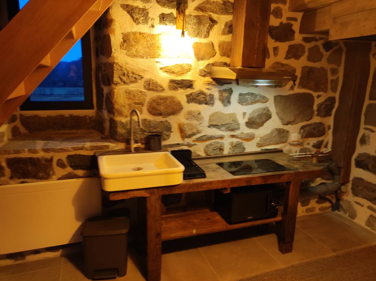 Le gite est composé au rez de chaussée une pièce à vivre avec un coin cuisine, table à induction, micro-onde gril, frigo freezer, un grand canapé(…)
