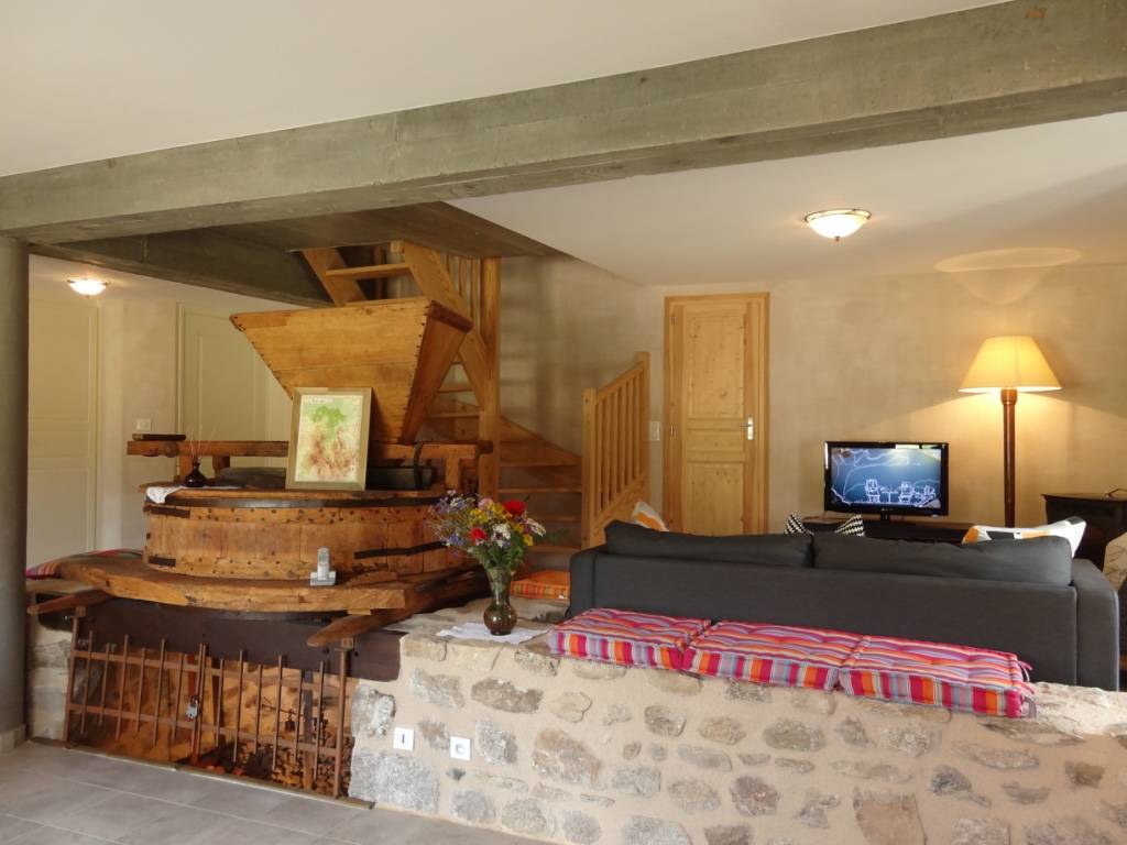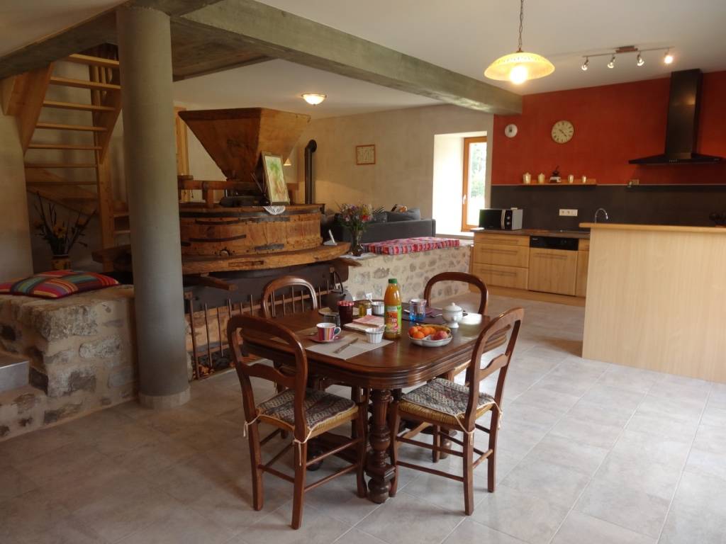 Au rez-de-chaussée se trouvent une cuisine, une salle à manger, un salon avec poêle à granulés (fournis gratuitement), un WC et l’ancien mécanisme du moulin conservé et mis en valeur. Au premier étage, une chambre avec un lit de 160 et une chambre avec deux lits une personne de 90; les couchages sont préparés pour l’arrivée, une salle d’eau, un WC séparé. Le linge de toilette et le linge de lit sont fournis gracieusement. Le terrain attenant de 1000 m2 est non clos. Ce gîte possède un garage fermé et une terrasse. Le chauffage par PAC géothermique est inclus. Diverses activités aux alentours et à Craponne/Arzon : centre équestre, randonnées, cyclotourisme, piscine, mini-golf, festival de musique Country et de musique classique, vélo rail à Ambert et Allègre, Route des Balcons du Haut-Forez, Gorges de la Loire … Commerce et services à Craponne-sur-Arzon (5 Kms).
