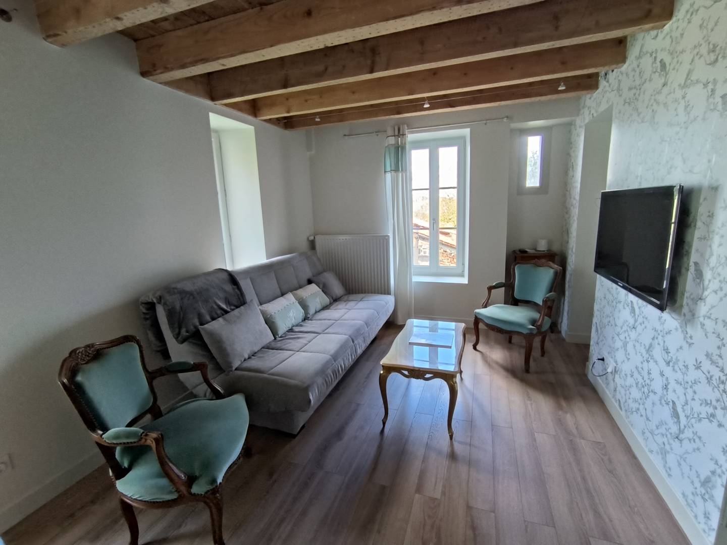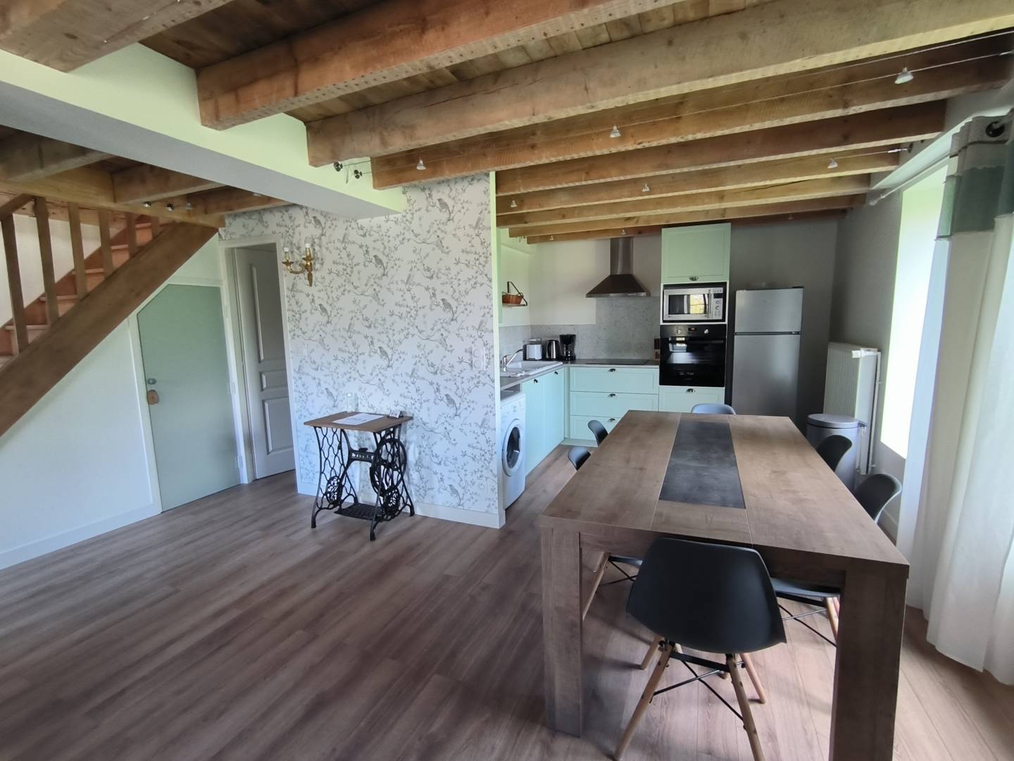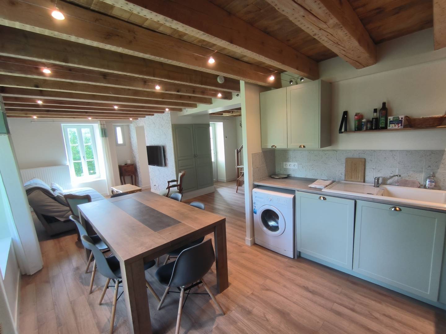 Des tons clairs et naturels, des poutres apparentes, ce gite allie l’ancien et le moderne.