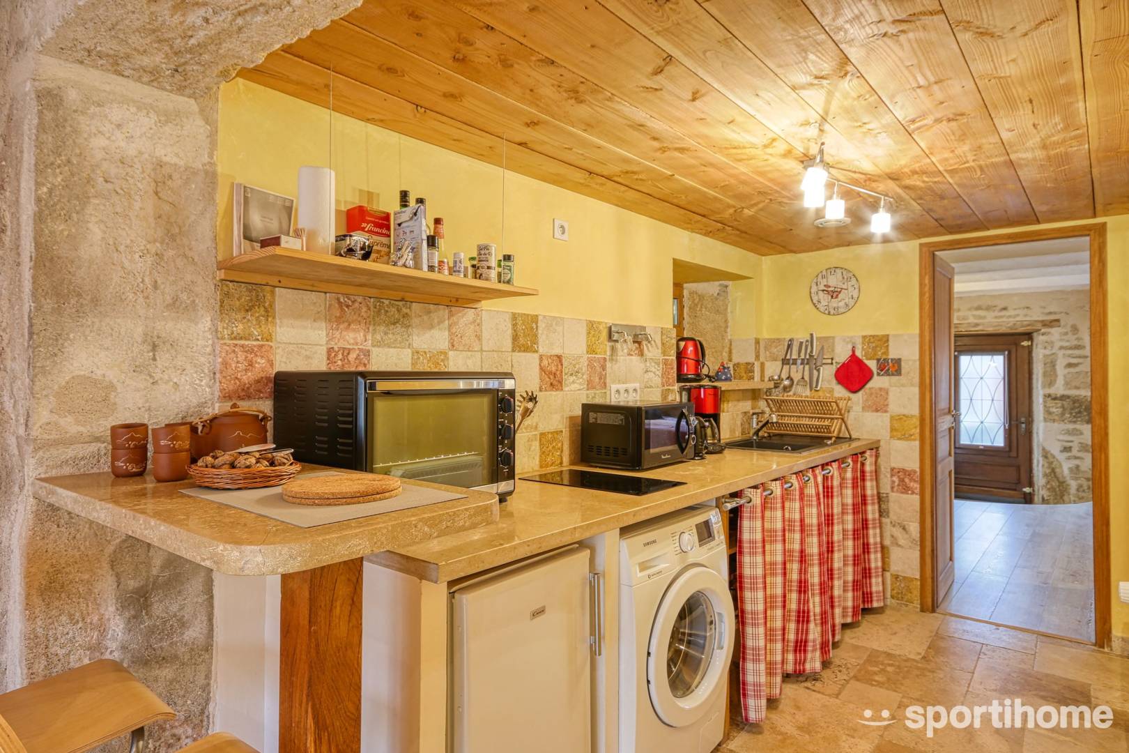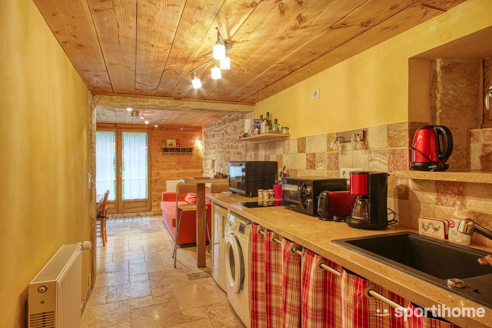 Le gîte se situe au rez-de-chaussée de notre habitation (fenêtre et porte de la photo ci-contre). Il est sur un seul niveau et est aménagé pour accueillir jusqu’à 4 personnes. Le gîte est composé d’une chambre, une cuisine aménagée, un séjour / salon, 1 salle d’eau, 1 douche, 1 WC.