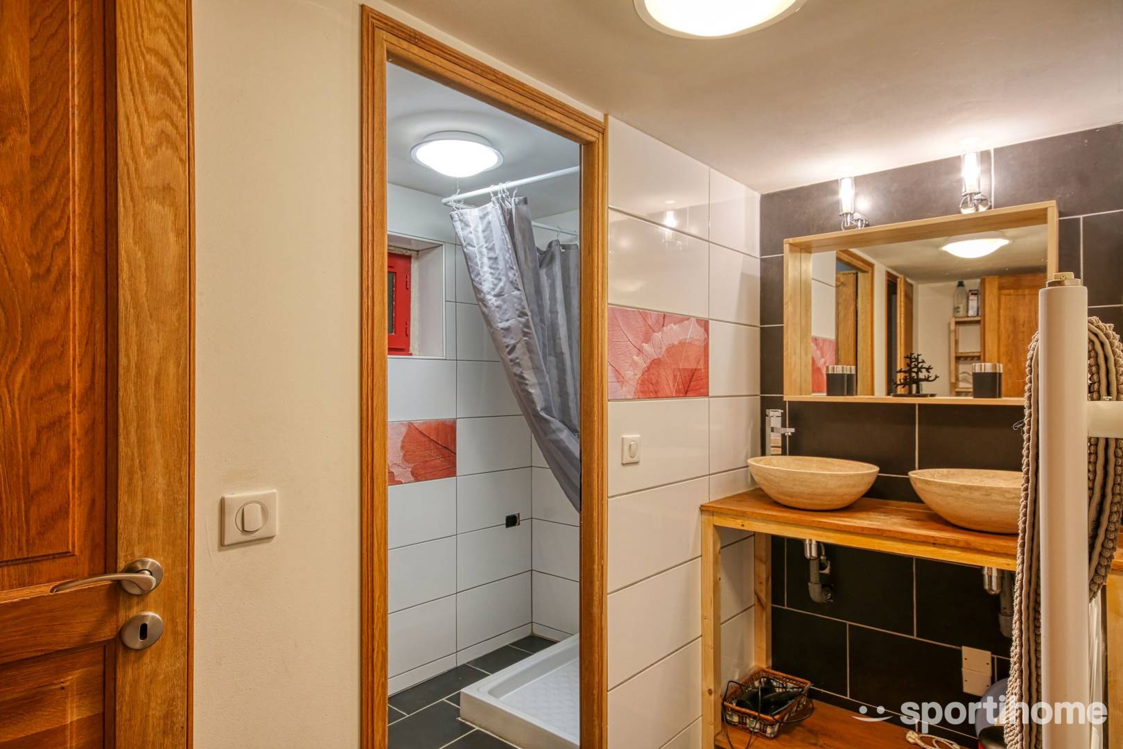 – Mur en pierre jointé à la chaux, en chêne massif ou en plaque de Fermacell