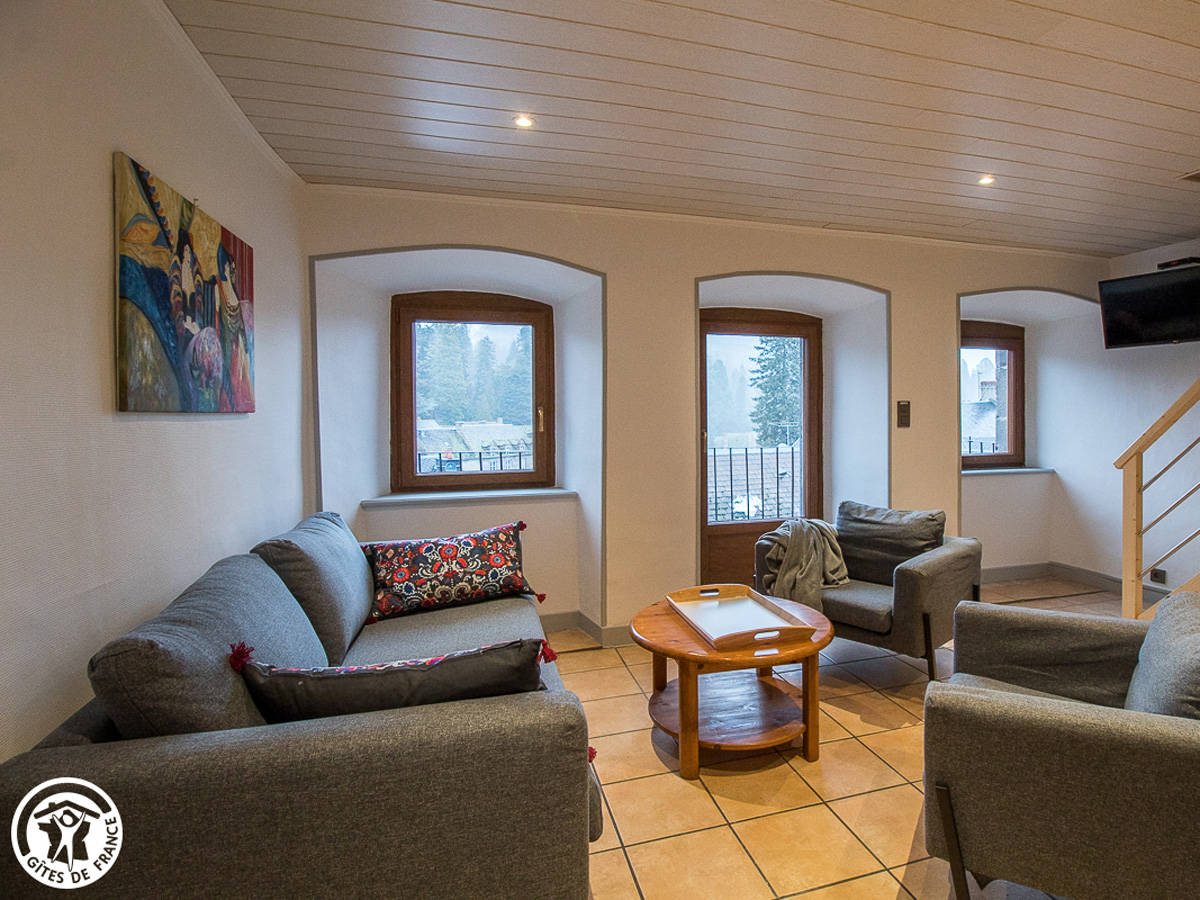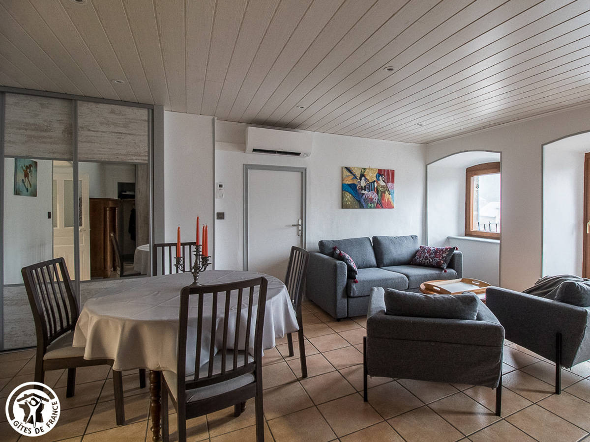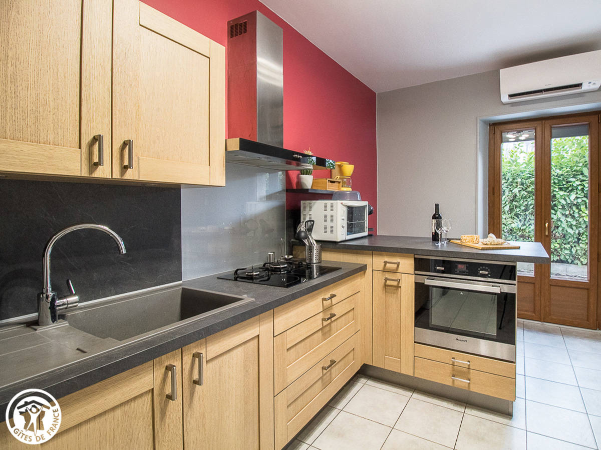 Complétement rénové en 2020, le gîte est un duplex au rez-de-chaussée de la maison, qui comprend quatre autres appartements.