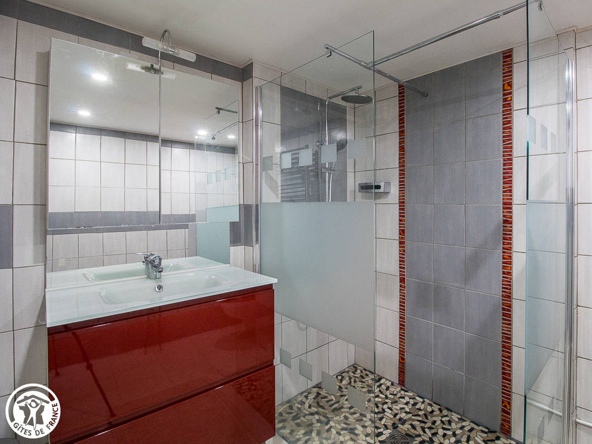 Au niveau inférieur se trouve une spacieuse cuisine équipée, un vaste salon-salle à manger (2 personnes supplémentaires acceptées dans canapé-lit grand confort 25 €/pers/sem) ainsi qu’une salle d’eau-wc. Vous aurez également accès au balcon et à une jolie terrasse avec salon de jardin et plancha privatifs.