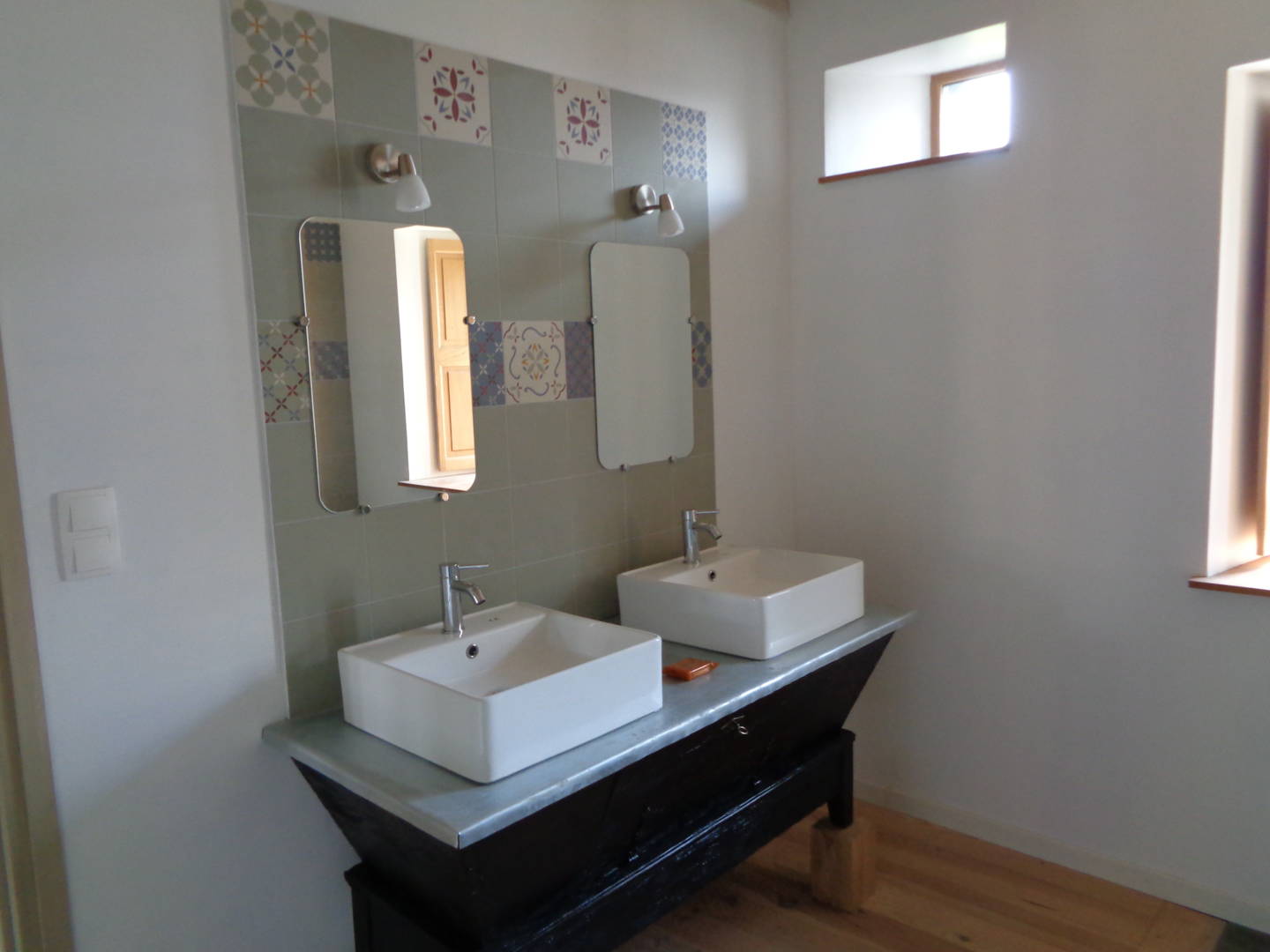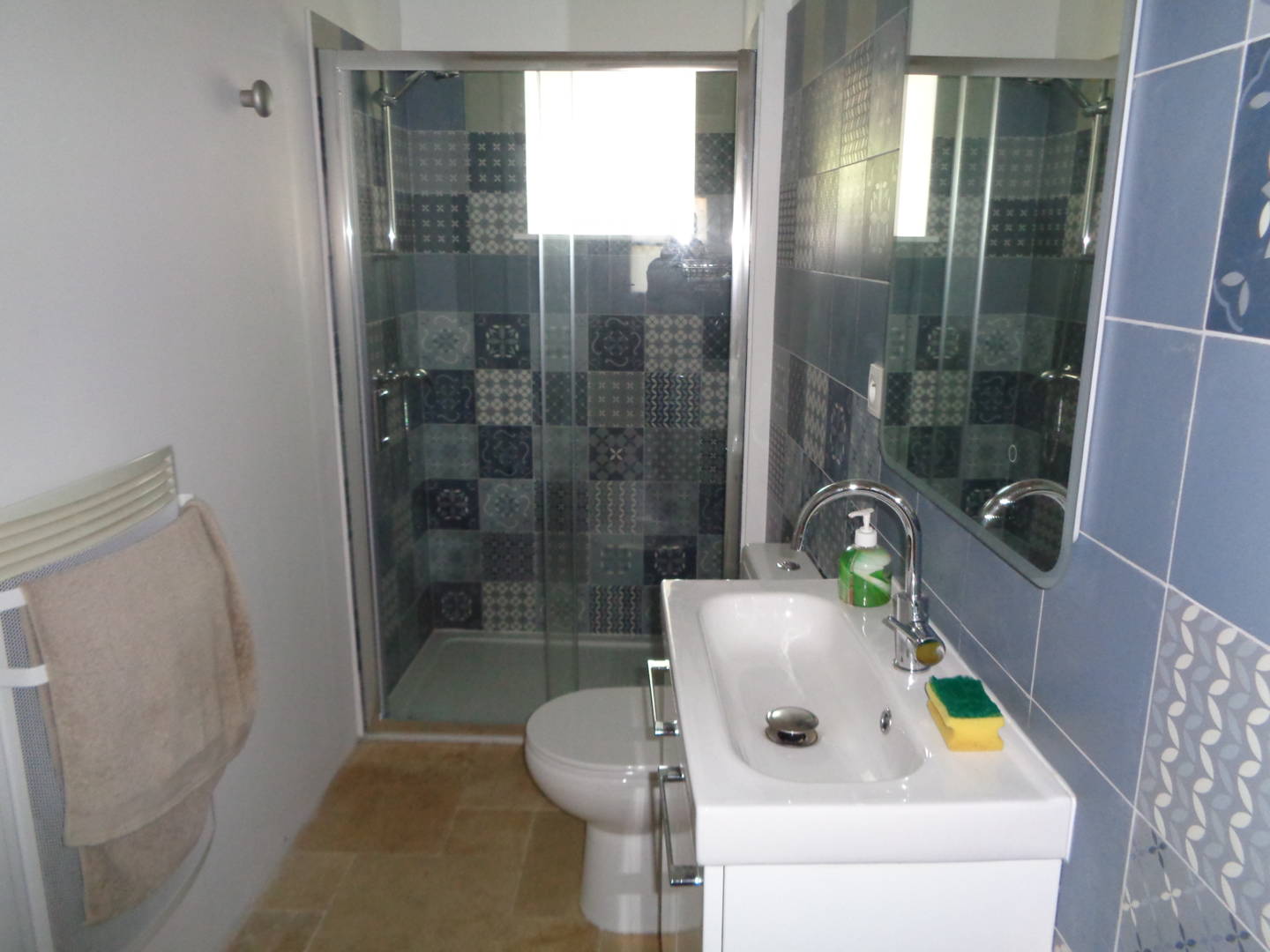 A l’étage : 3 chambres avec lit double 140, une grande salle de bains. Terrain arboré de 1 000m2 complétement clos.