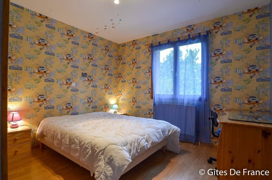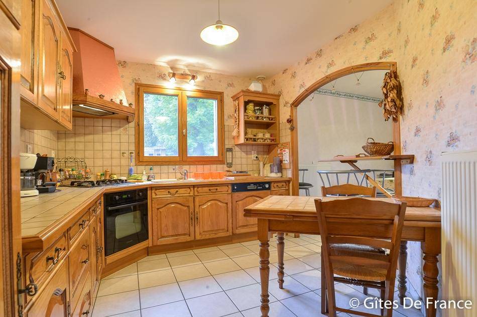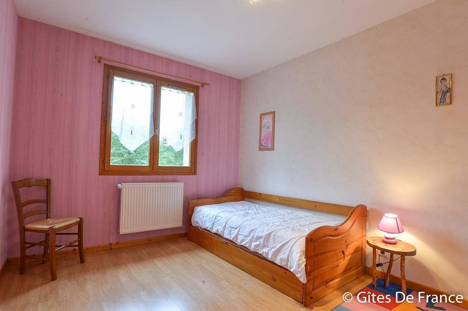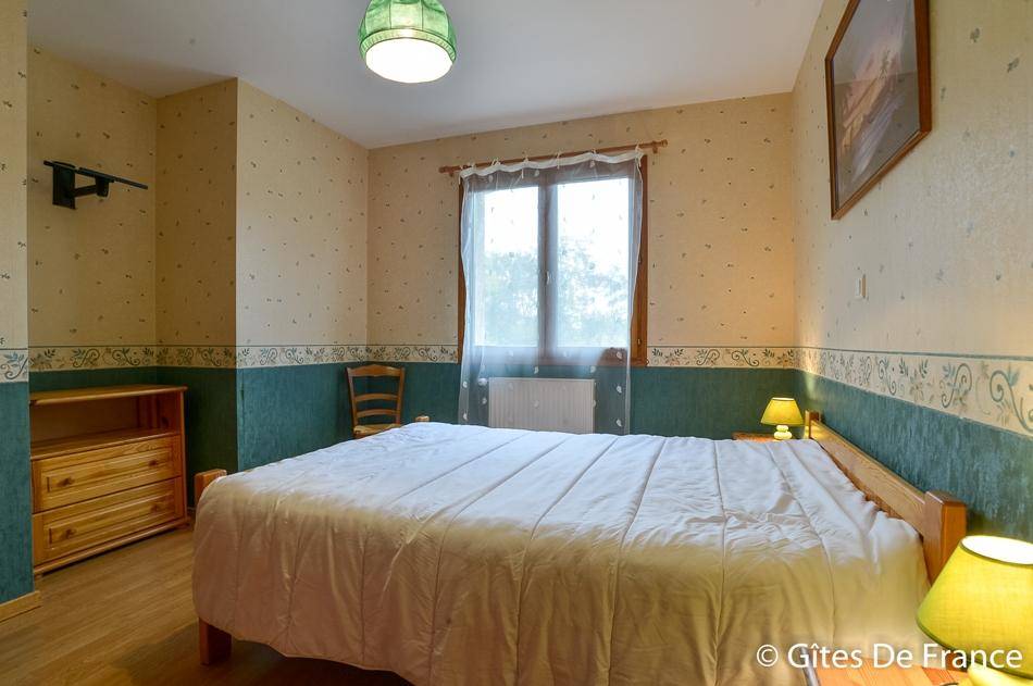Gîte sur un niveau avec grande pièce de vie : salon et salle à manger avec cheminée (26€/demi stère). Cuisine équipée ouverte sur le séjour. 3 chambres (2 lits 2 pers., 2 lits 90 gigognes), salle de bains, WC indépendants. Buanderie dans le sous sol. Chauffage au gaz de 40(…)